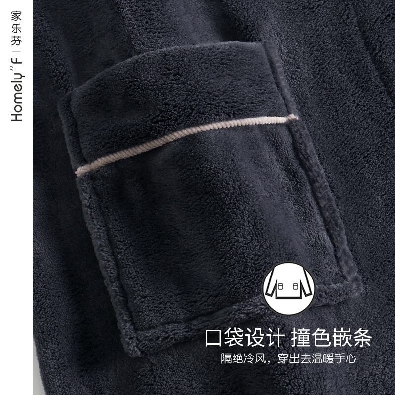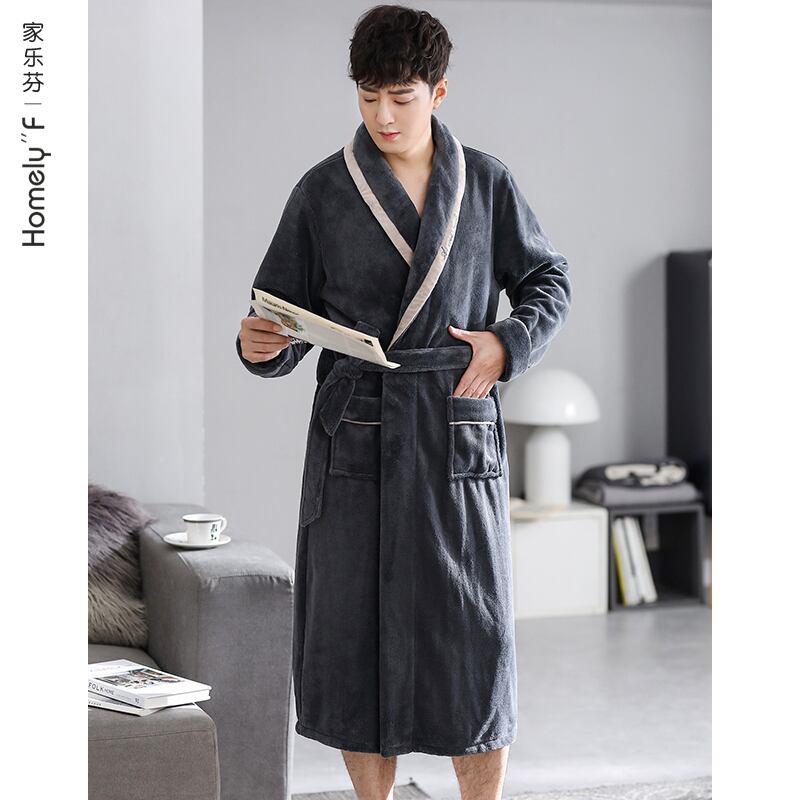 ナイトガウンメンズパジャマ秋冬冬コーラルフリースプラスベルベット厚手の暖かさフランネルバスローブロングバスローブ jial20081183986