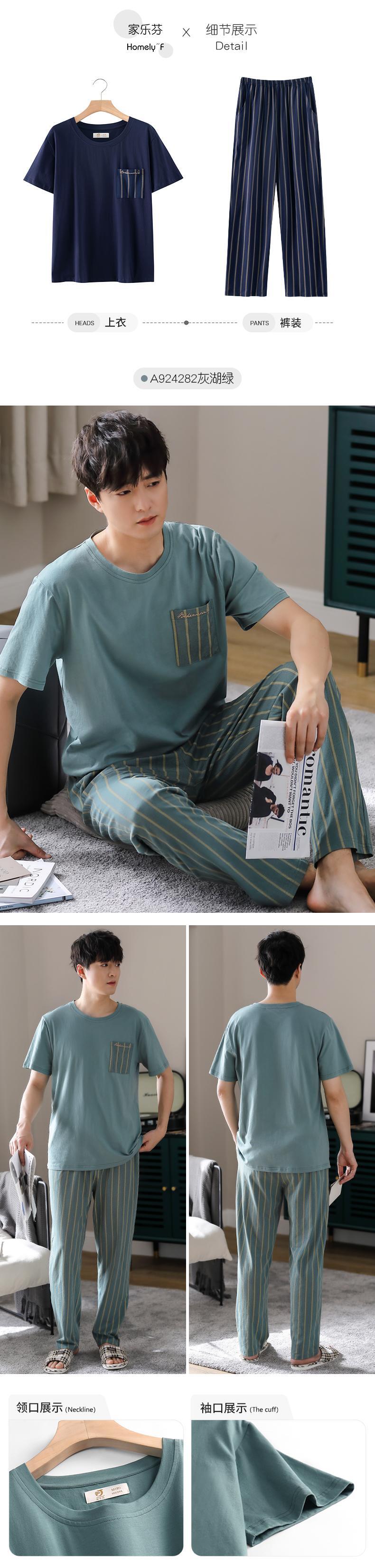 パジャマメンズサマーコットン半袖パンツホームサービスメンズサマー薄手プラスサイズのお父さんのコットンスーツ jial47045180713