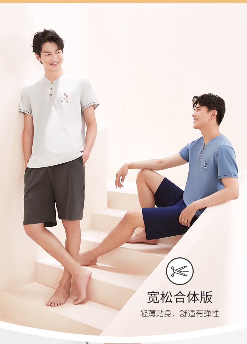 クールパジャマメンズサマーモーダルコットン半袖ショーツホームサービスメンズサマーシンアイスシルクスーツ jial54982720023