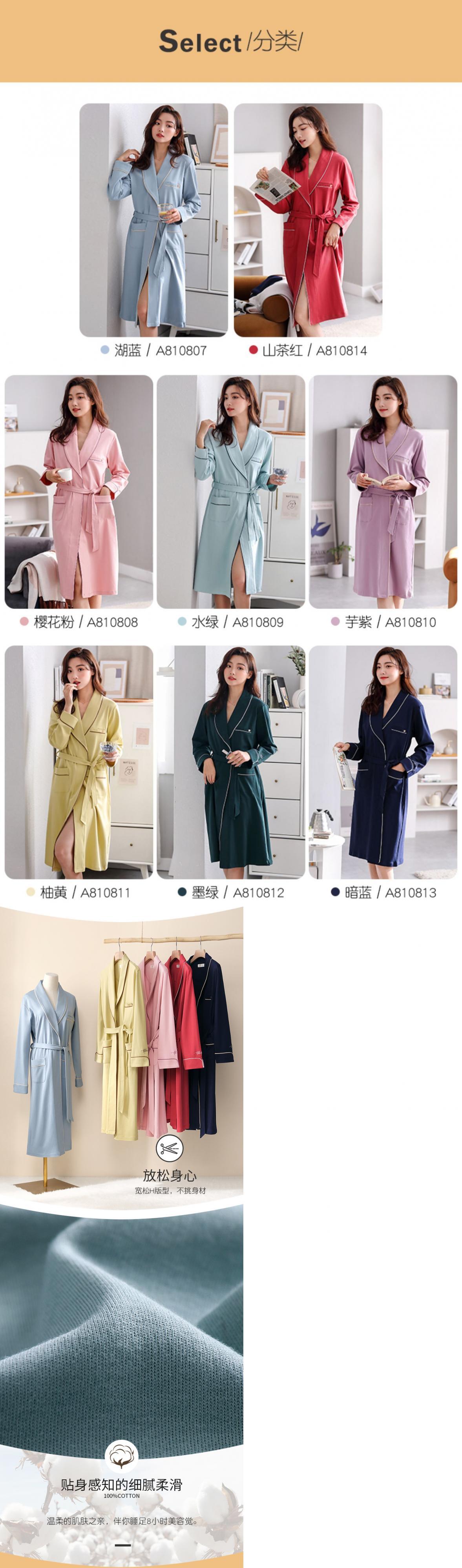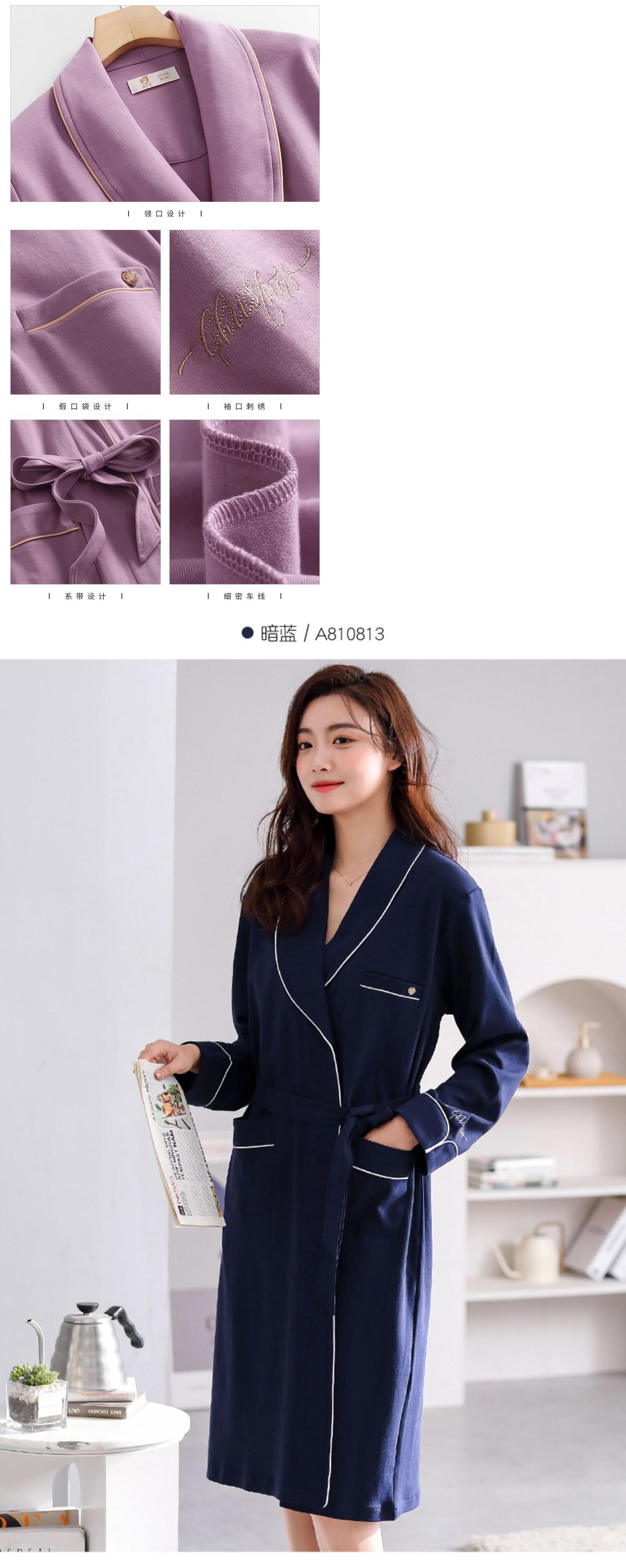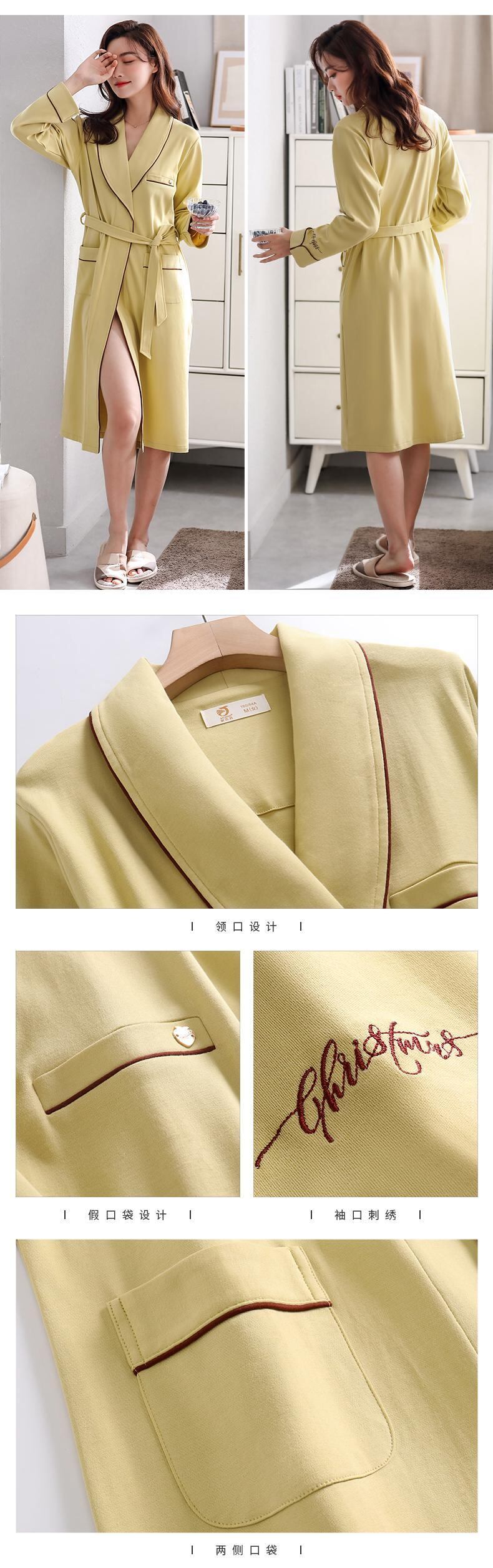 ナイトガウンレディースパジャマ春と秋のバスローブナイトドレス長く薄いセクション純綿長袖綿ホームサービス朝着バスローブ jial22239018342