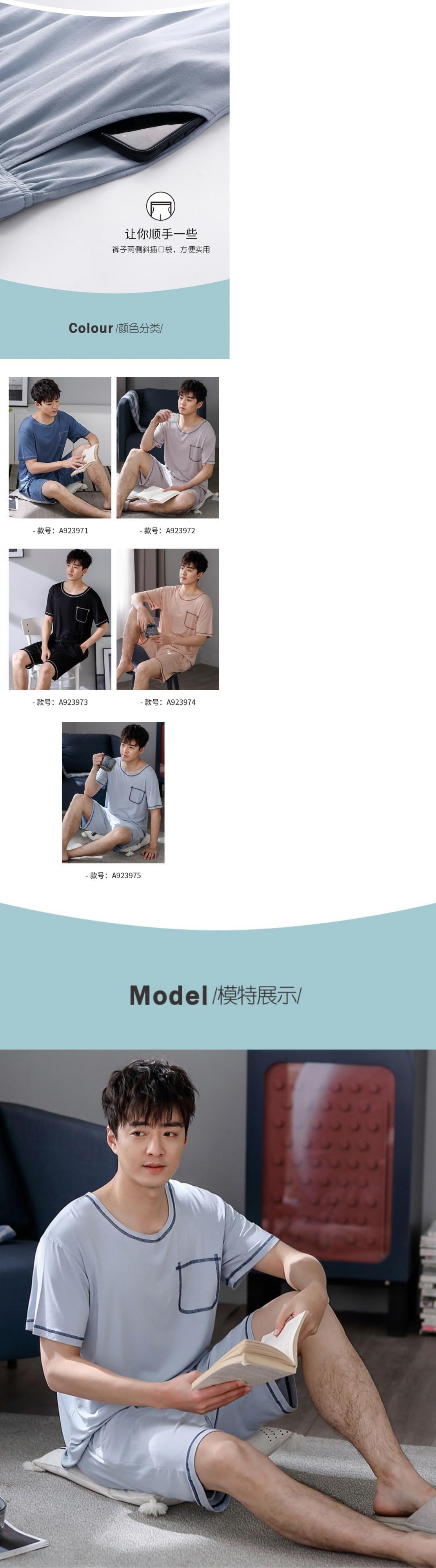 カルフールパジャマメンズサマーモーダルコットンシルク半袖ショーツホームサービスメンズサマーシンメンズスーツ jial18544306909