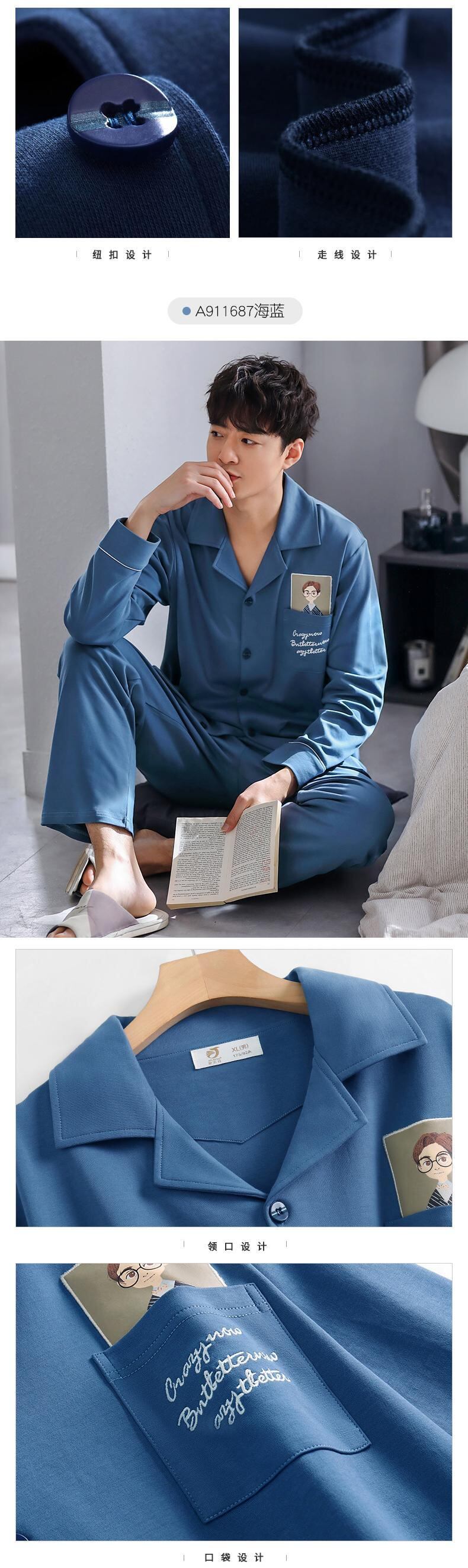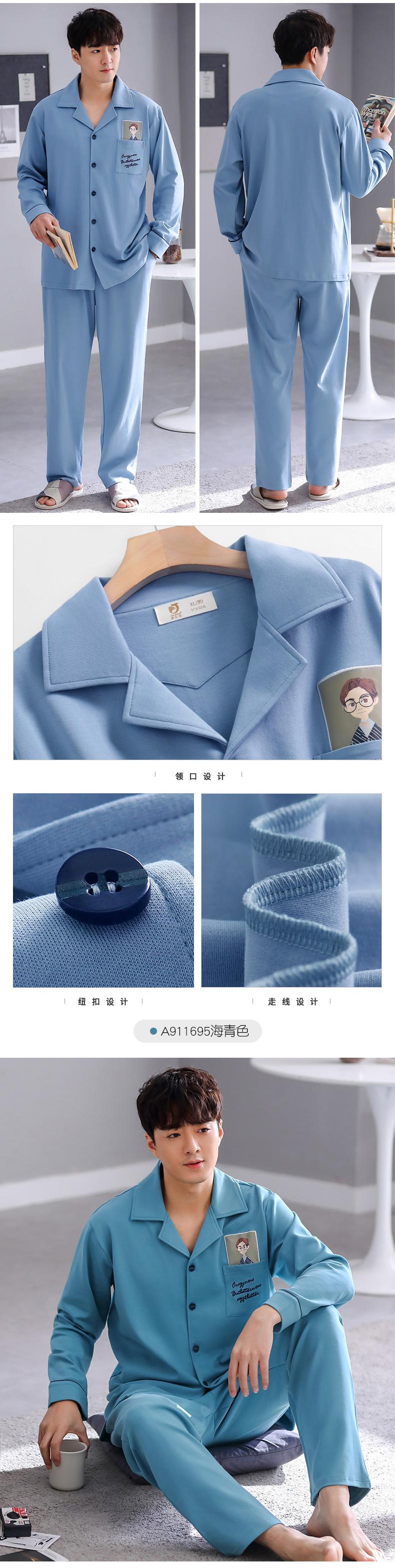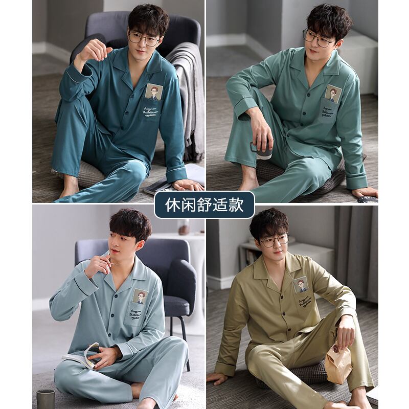 2021年新作パジャマメンズ春秋モデル秋コットン長袖ホームウェアコットン春夏薄手のスーツ jial76583261718