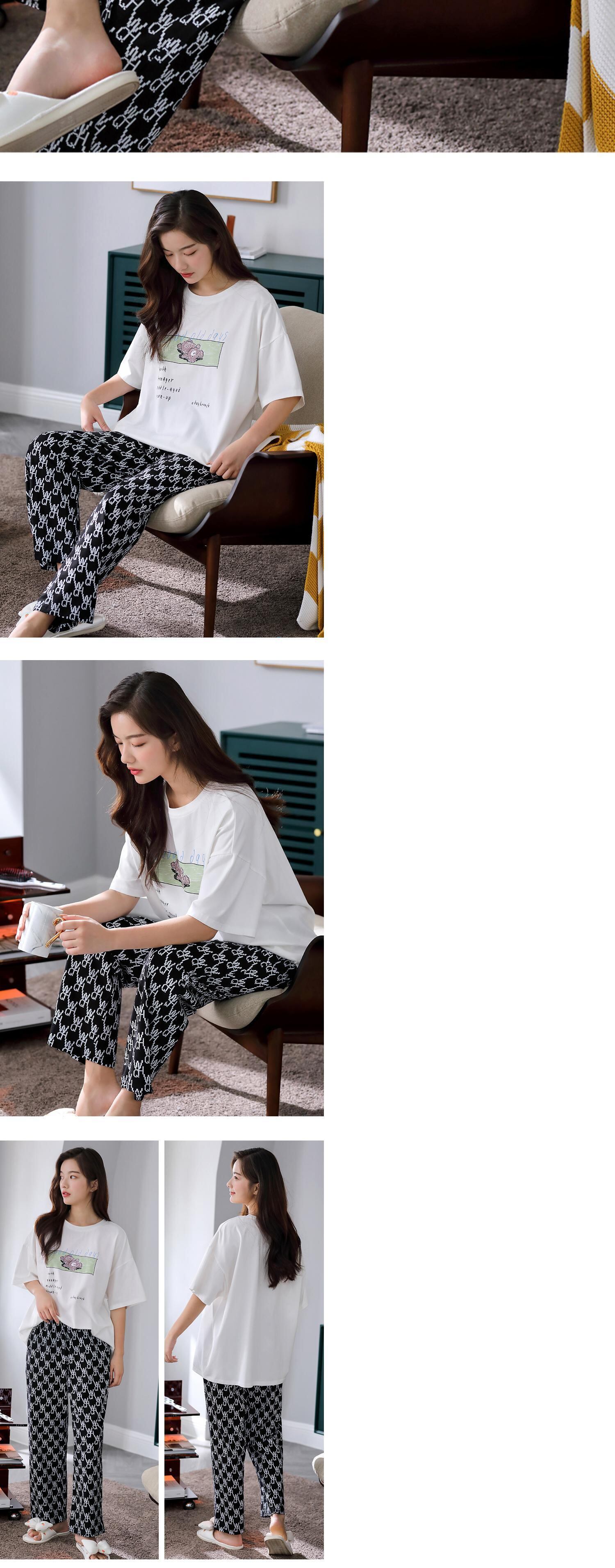 パジャマレディースサマーコットン半袖パンツホームサービスサマーシンコットンカジュアルはファッションスーツの外で着用できます jial7437560441