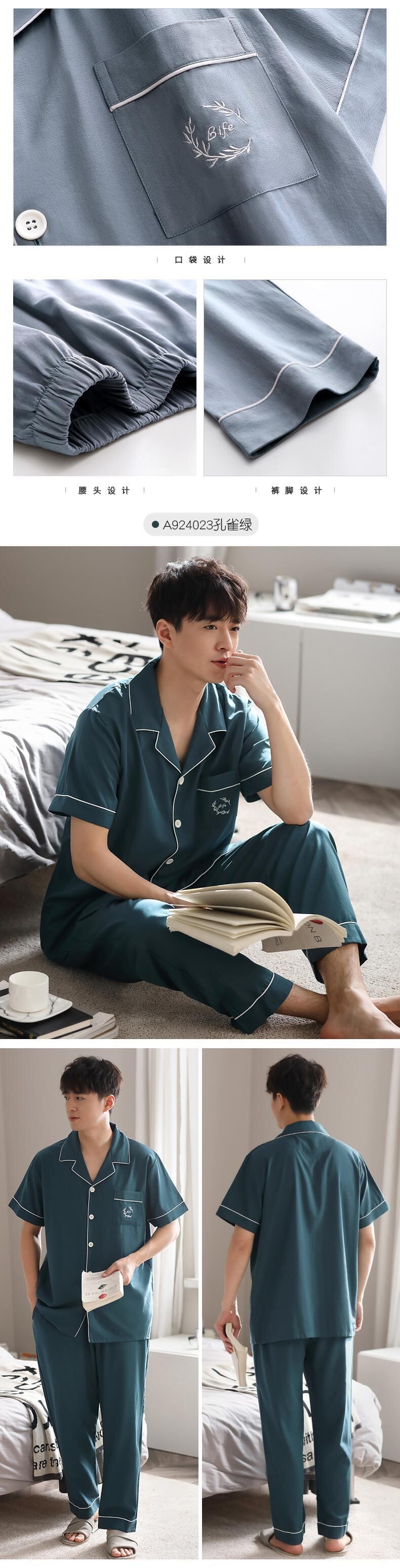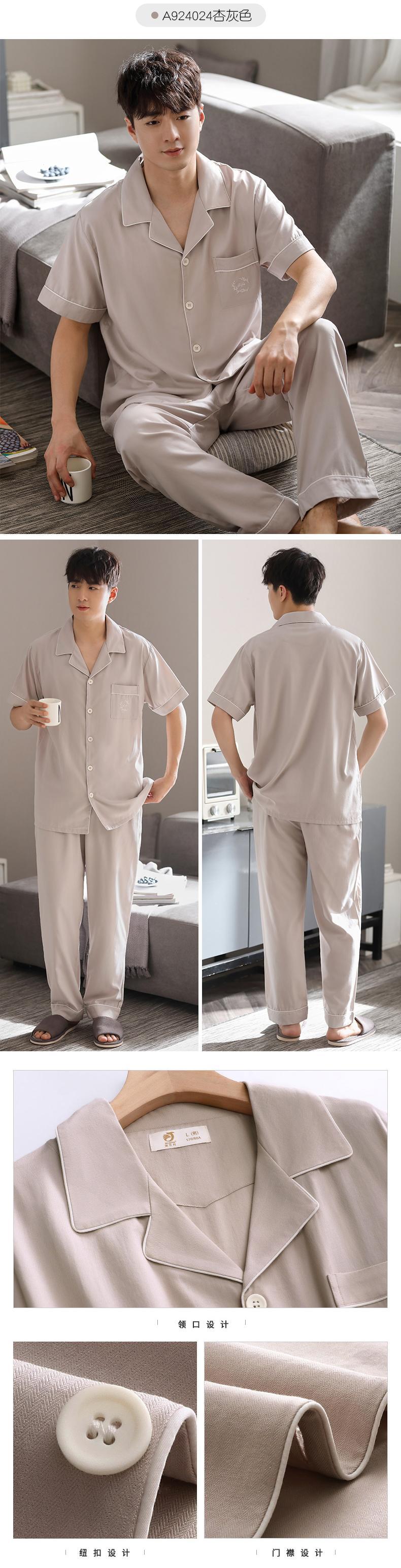 レンチングモーダルパジャマメンズサマー半袖パンツホームサービスメンズサマー薄めのアイスシルククール感スーツ jial87630549492