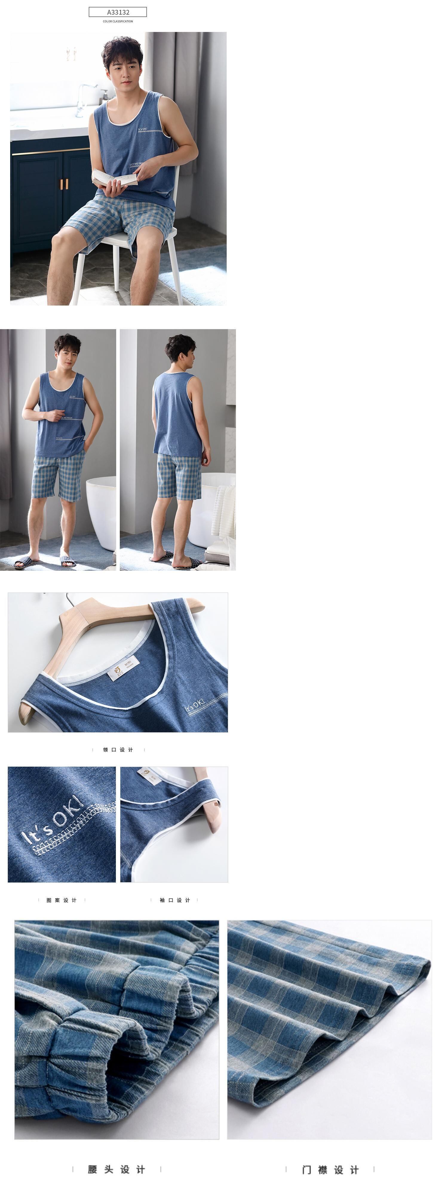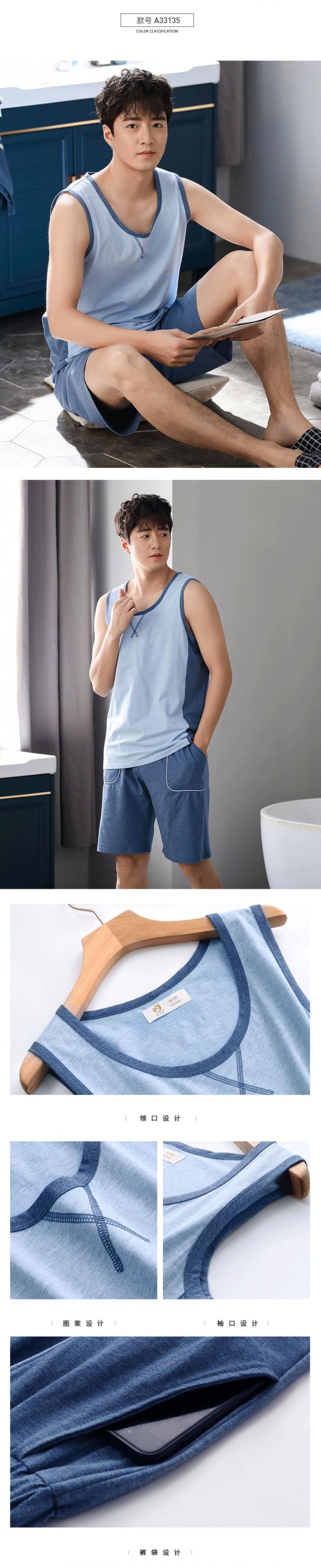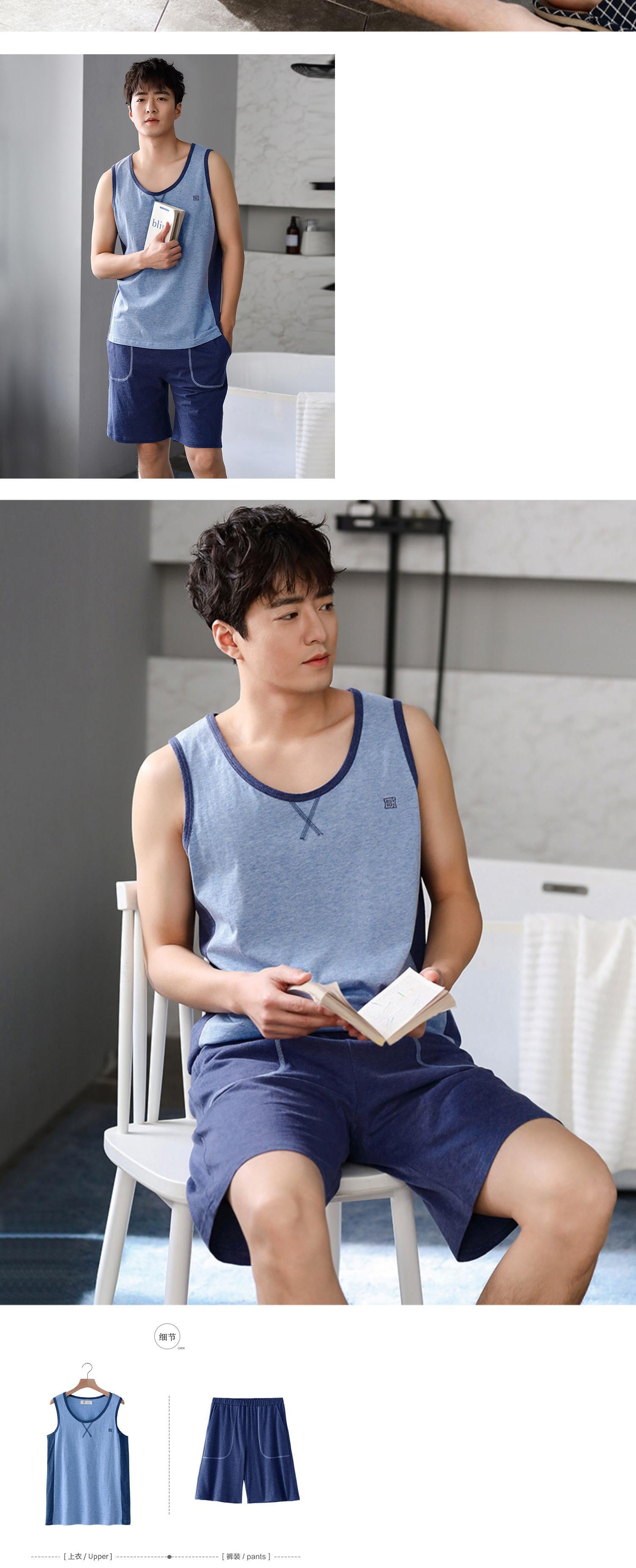 パジャマメンズサマーコットンノースリーブベストショーツホームサービスメンズサマーシンコットンプラスサイズスーツ jial24034736465