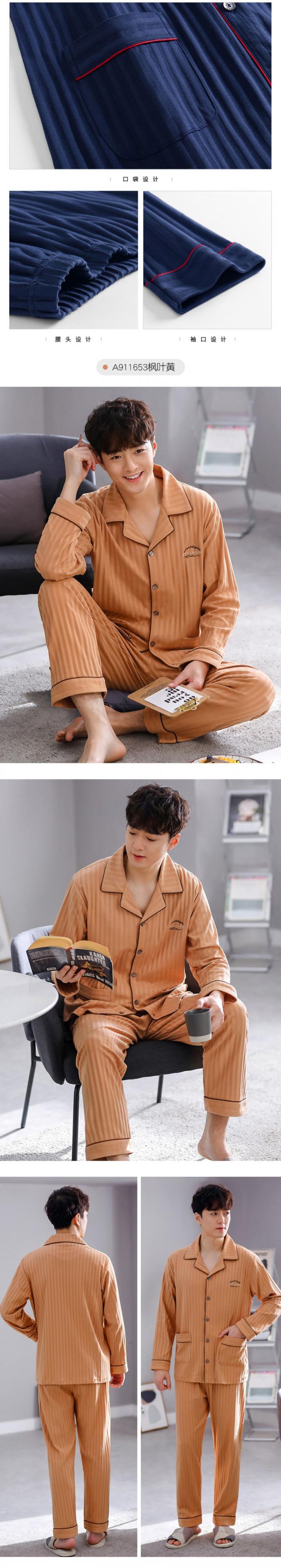 2021年新作パジャマメンズ春秋コットン長袖ホームサービスメンズコットン春夏薄スーツ jial34105171349