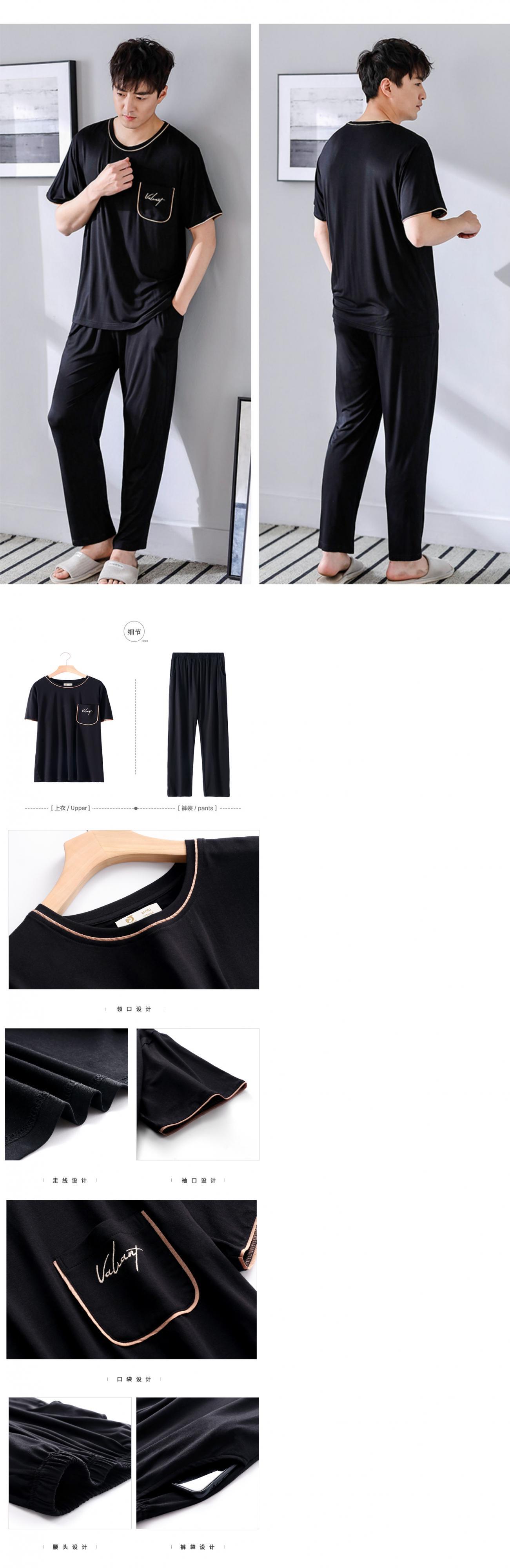 パジャマメンズサマー半袖パンツモーダルコットンシルクホームサービスメンズメンズサマー薄黒スーツ jial62898447126