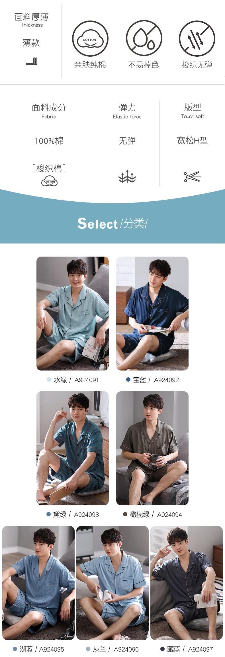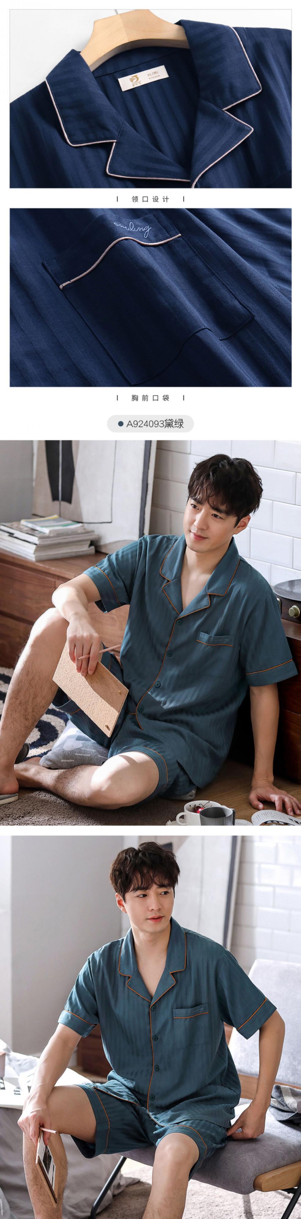 綿ガーゼパジャマメンズサマーコットン半袖ショーツホームサービスメンズサマー薄手コットンラージサイズ jial29276213750