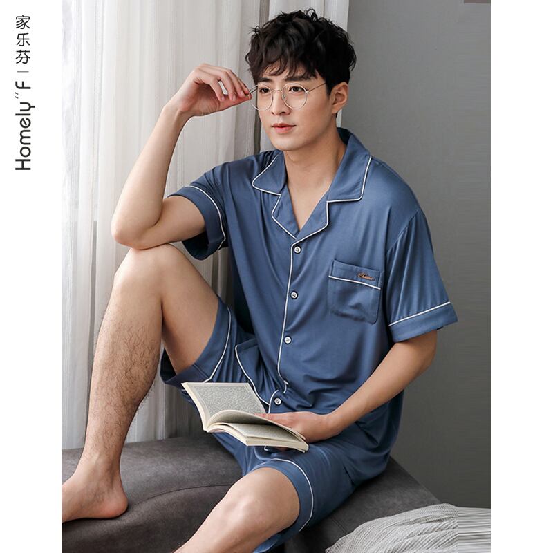 パジャマメンズサマーモーダルコットンシルク半袖ショーツホームサービスメンズメンズプラスサイズサマーシンスーツ jial23480077593