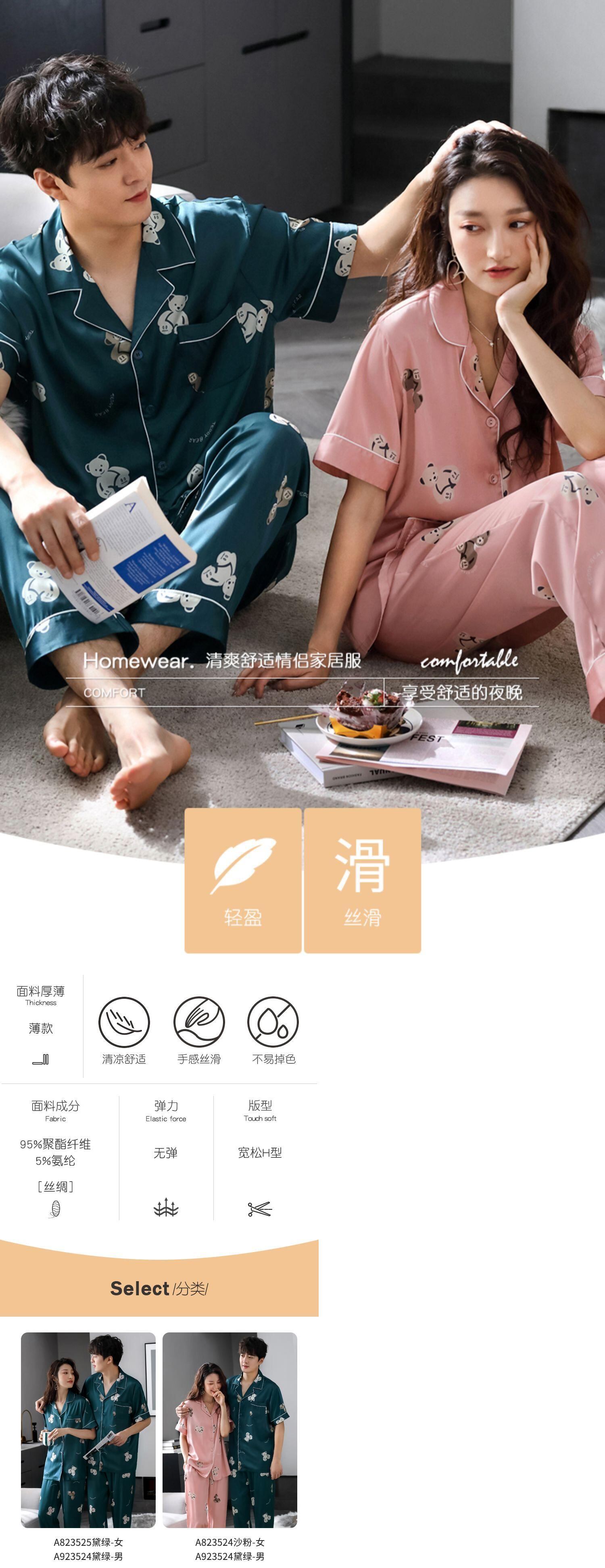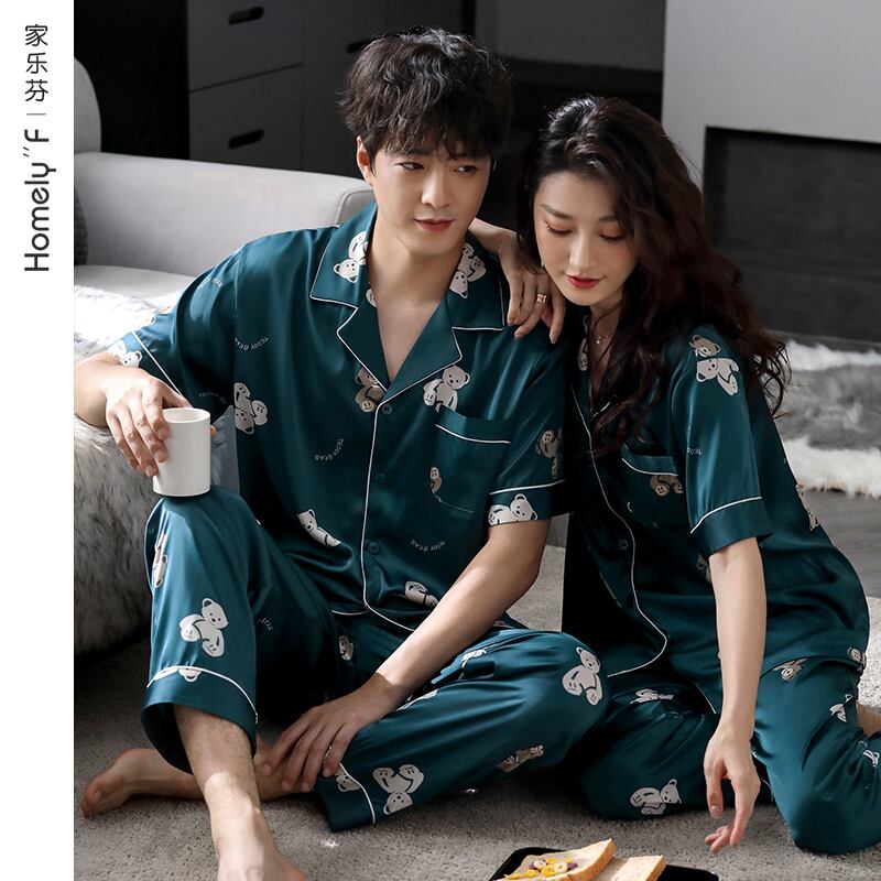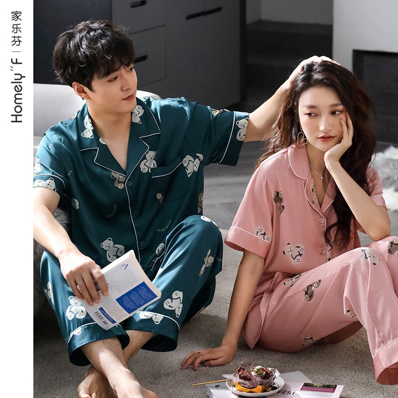 カップルパジャマメンズサマーシルクアイスシルク半袖パンツホームサービスレディースサマーシンシルクスーツ jial17914634568
