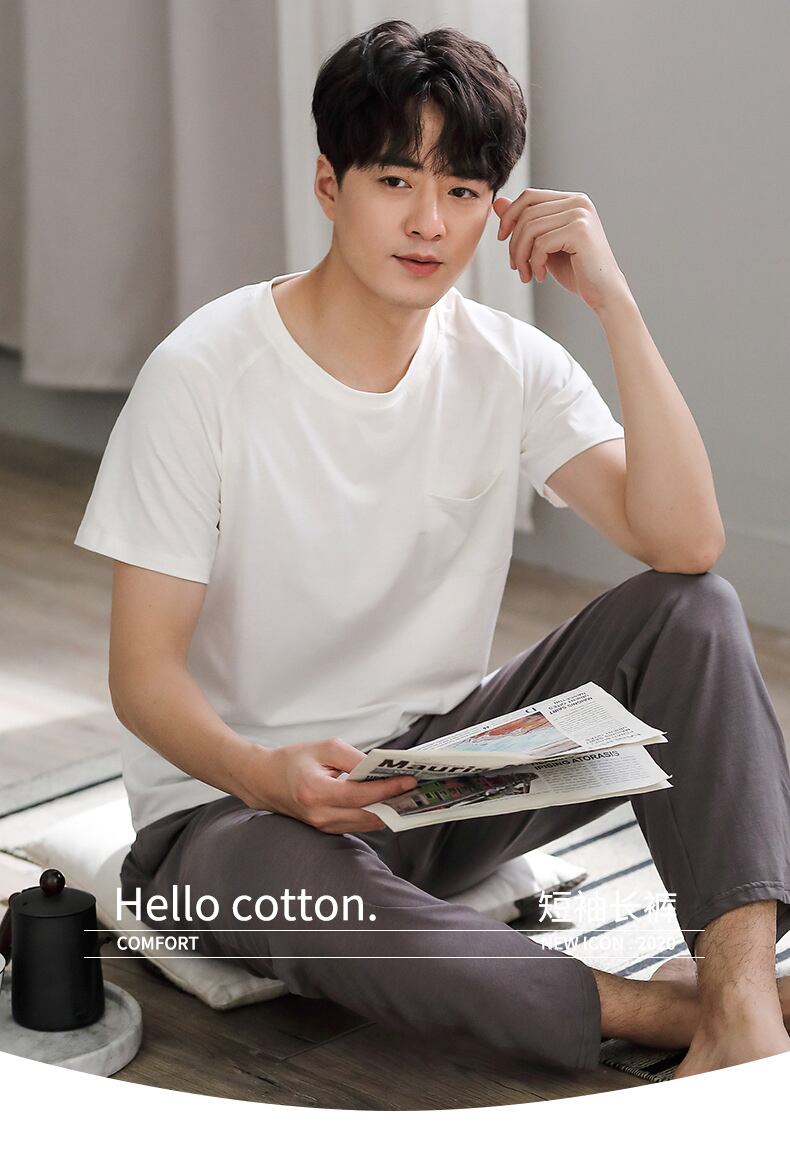スラブコットンパジャマメンズサマーコットン半袖パンツホームサービスメンズメンズサマーシンプルオーバースーツ jial10731180743