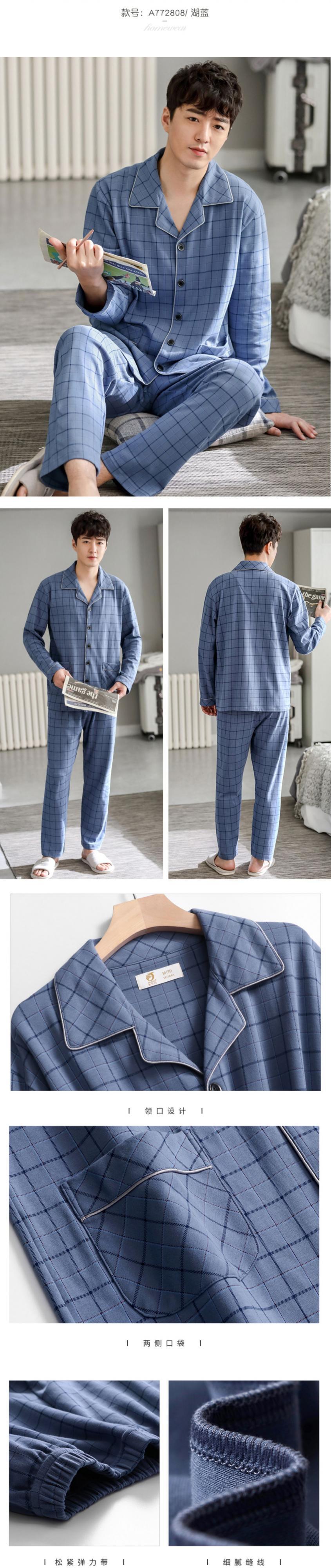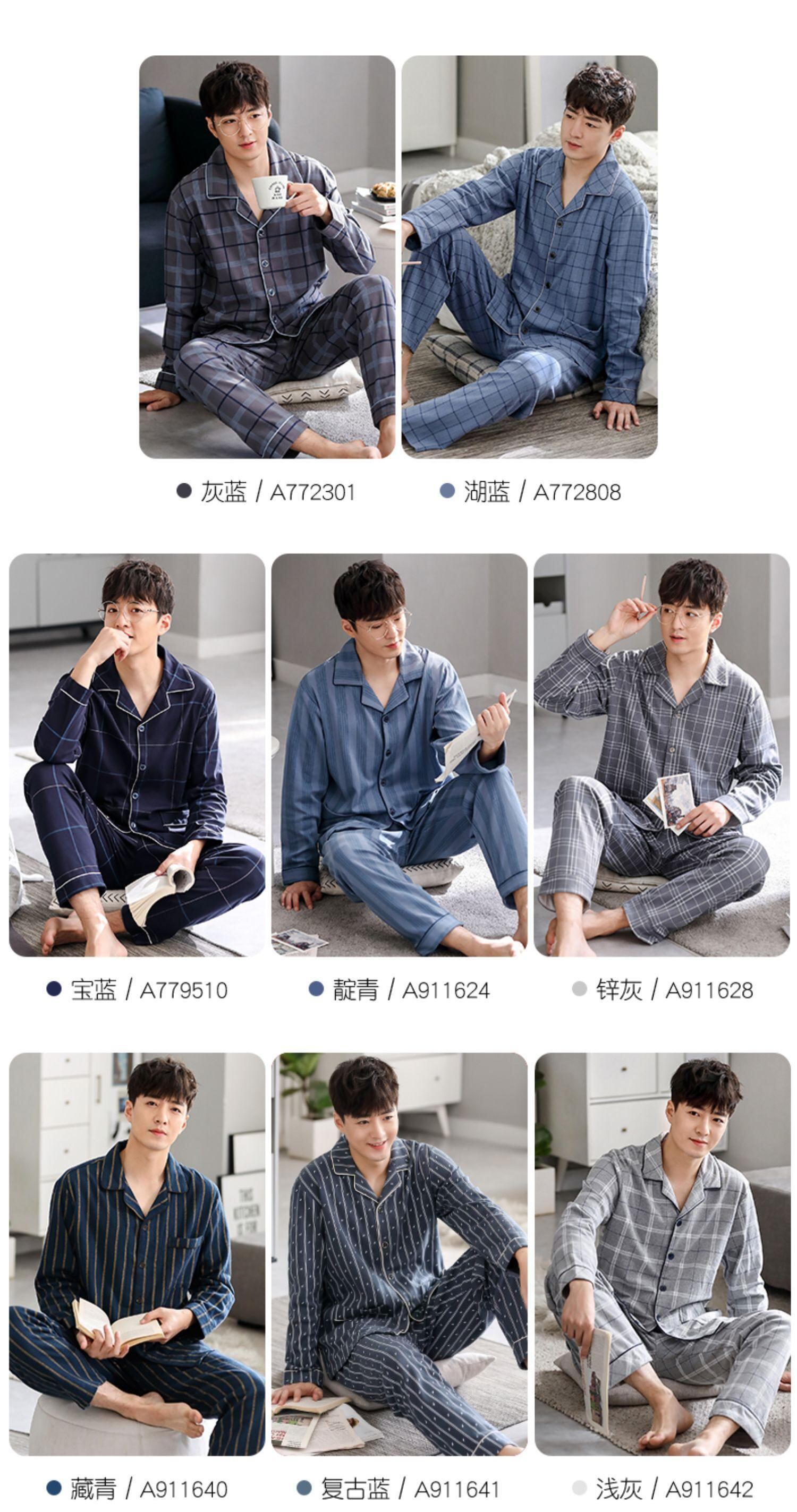 パジャマメンズ春、秋、秋、綿、長袖、ホームサービス、綿、秋、冬、冬、薄手のプラスサイズのスーツ jial84542627156
