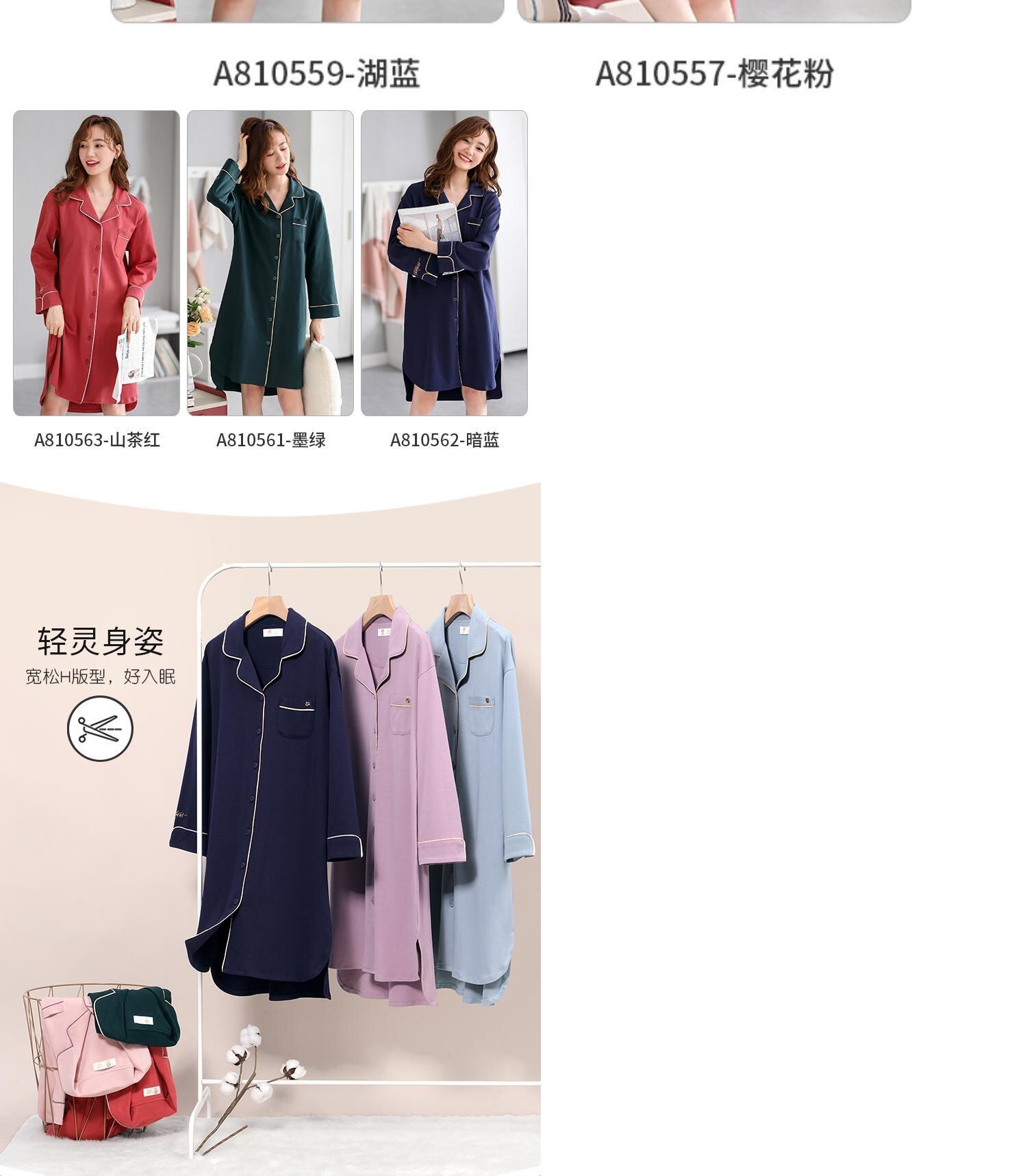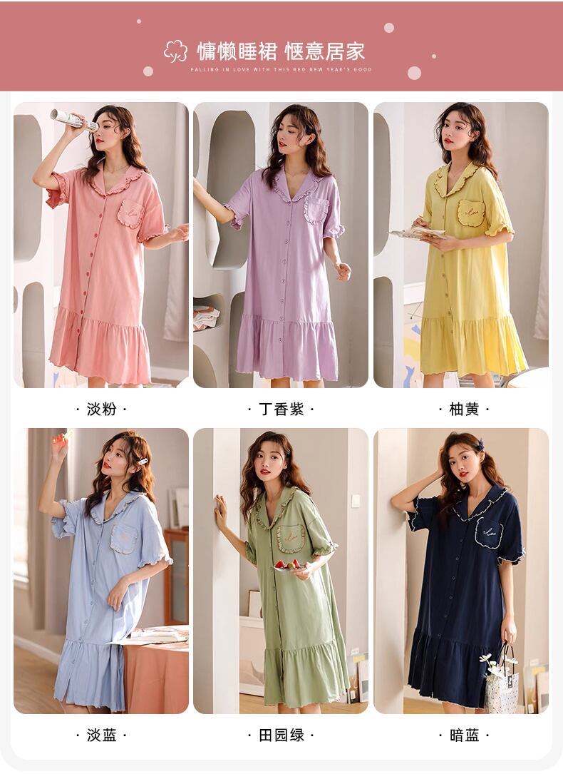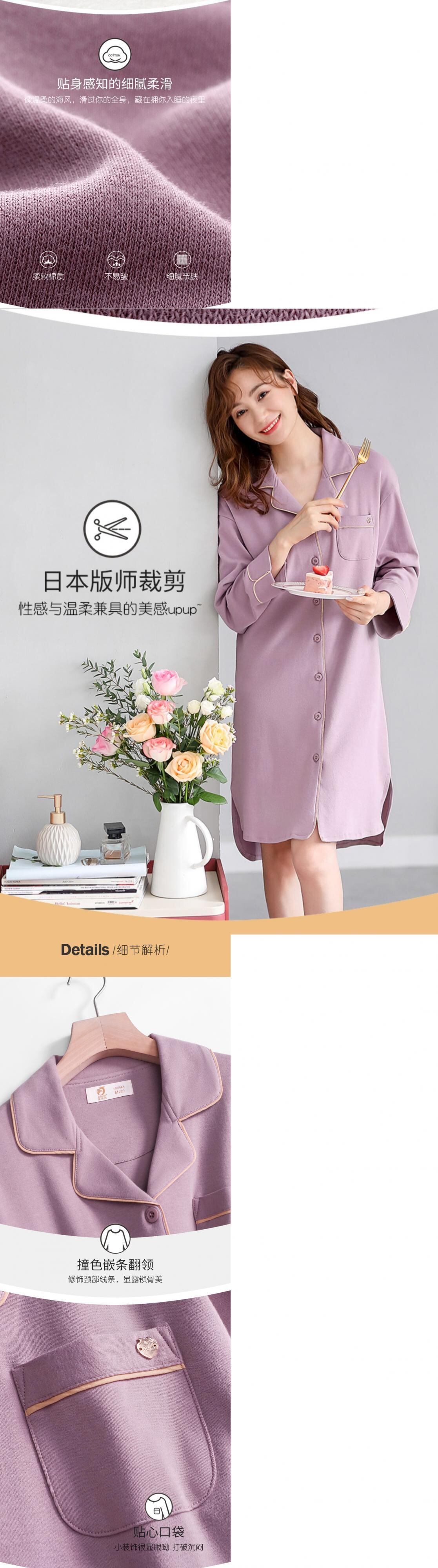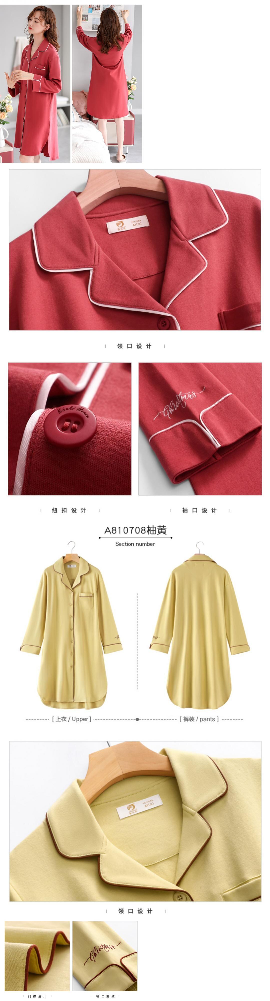 Jialefenネグリジェレディースパジャマ春秋秋長袖純綿薄手綿ロングシャツカーディガンシャツ jial97268205075