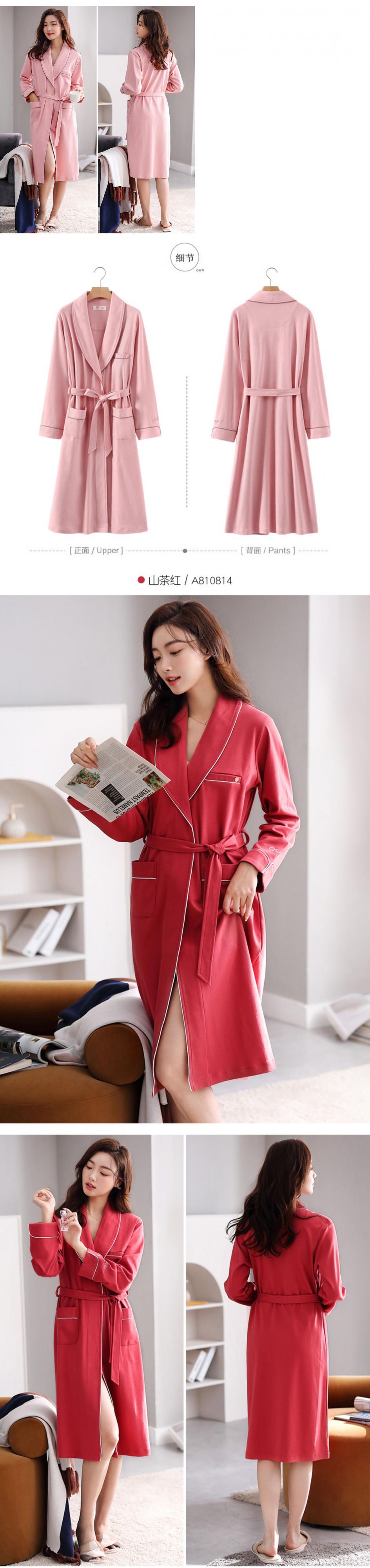 ナイトガウンレディースパジャマ春と秋のバスローブナイトドレス長く薄いセクション純綿長袖綿大サイズホームサービスeseスタイル jial53661982565