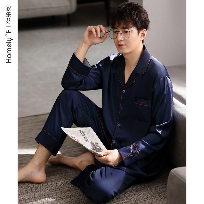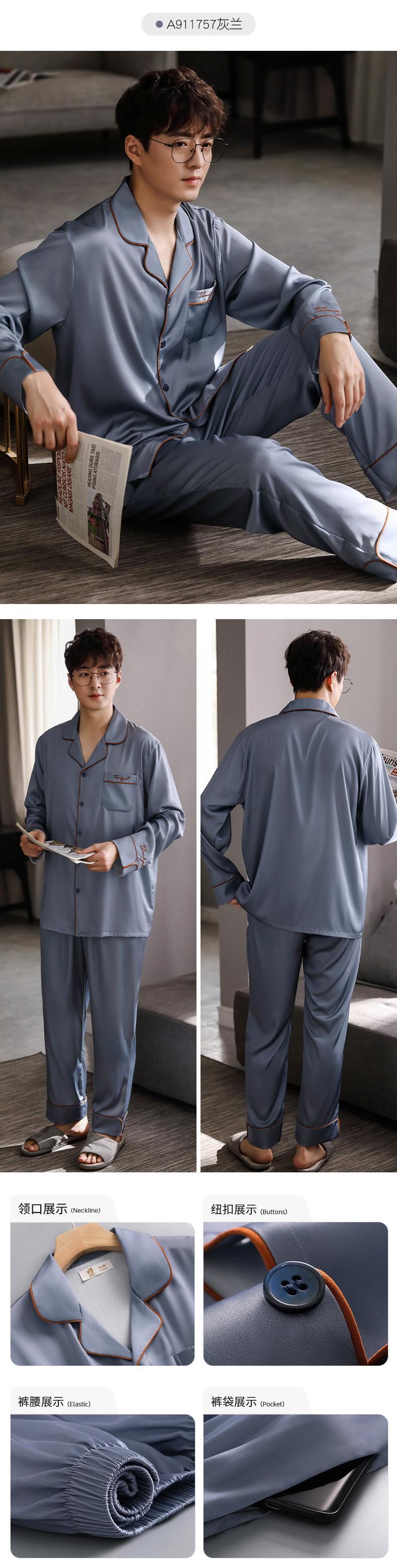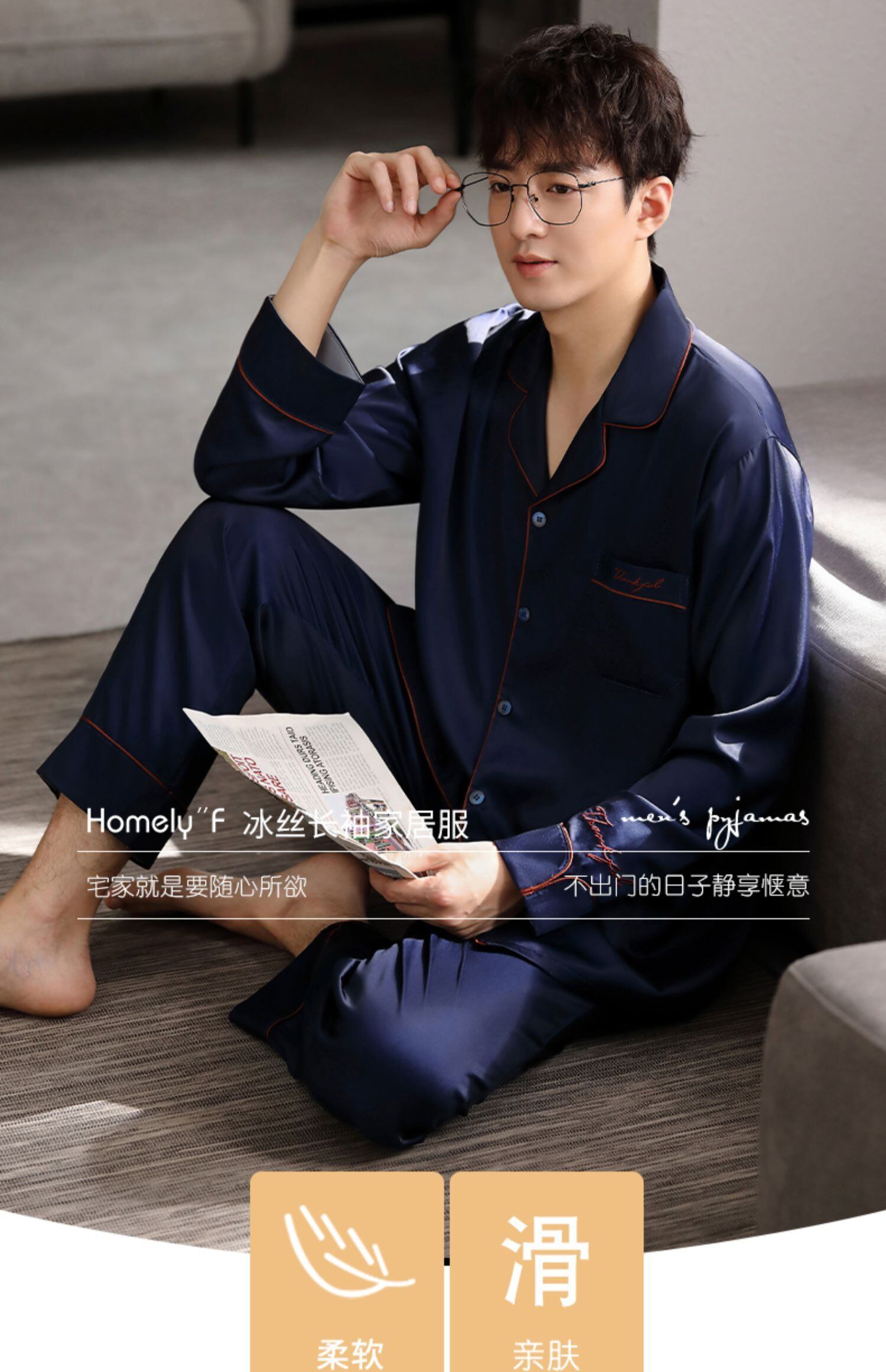 パジャマメンズ春夏シルクアイスシルク長袖ホームサービス夏薄春秋モデル秋のシルクスーツ jial25553215923