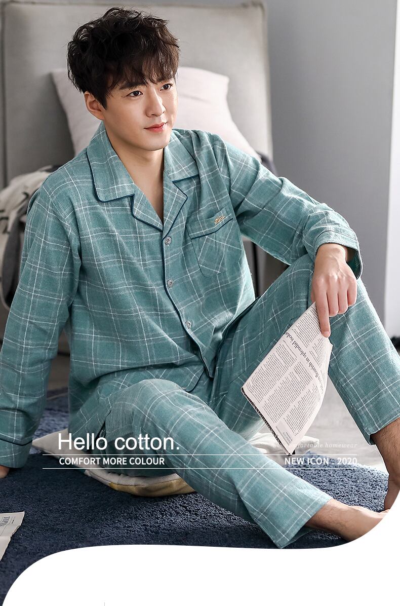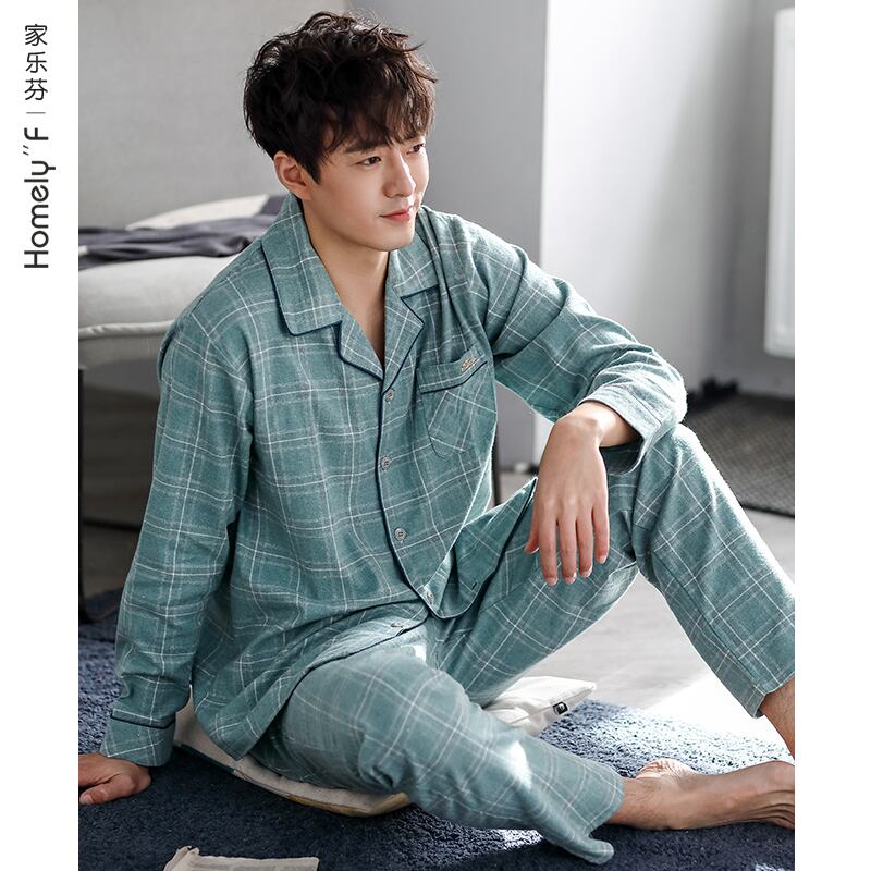 パジャマメンズ春秋ピュアコットン長袖ホームサービスメンズ薄秋冬モデル中年パパプラスサイズスーツ jial70951379556