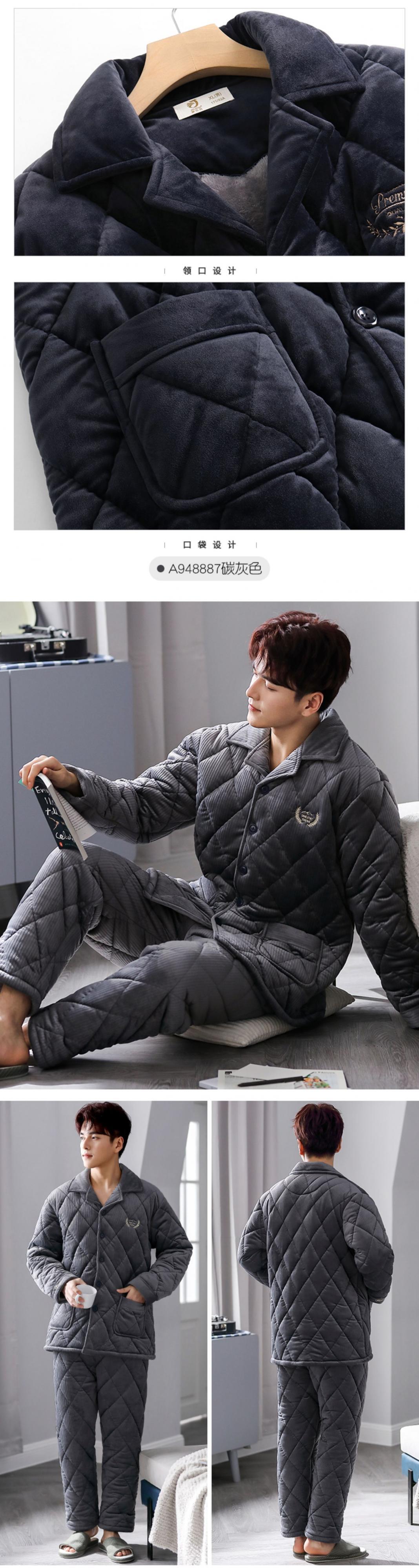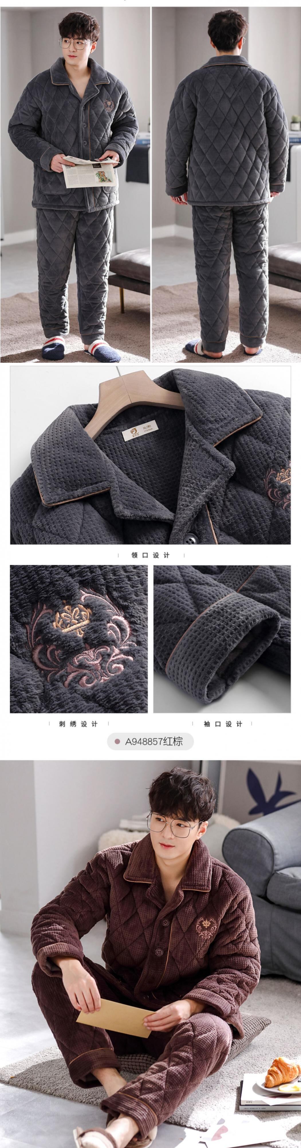パジャマメンズ冬3層厚キルティングコーラルフリースとベルベットの暖かいフランネルホームサービス秋と冬 jial64856898190