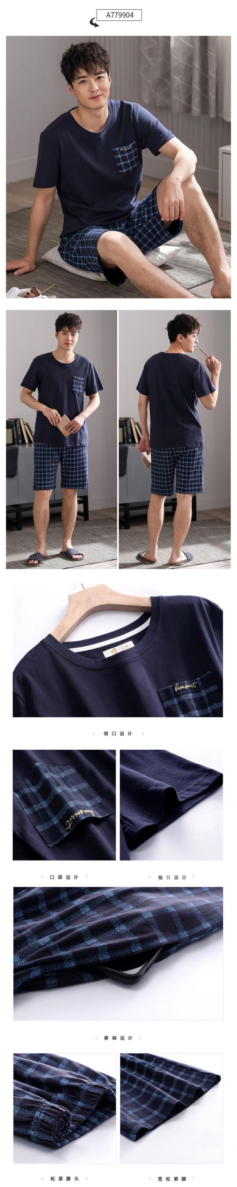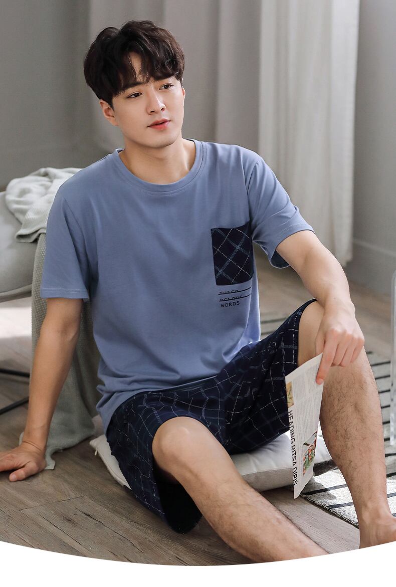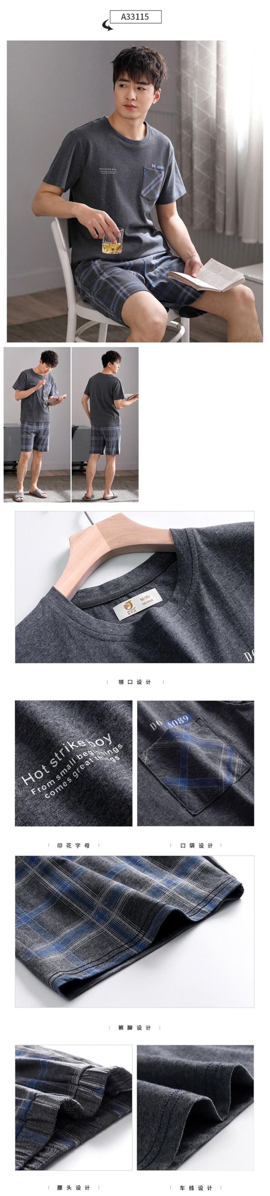 パジャマメンズサマーコットン半袖ショーツホームサービスメンズサマー薄手コットン中年ファーザースーツ jial4834598583