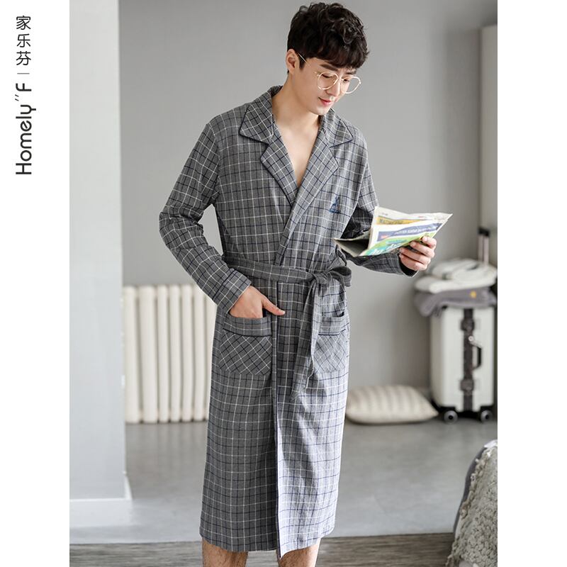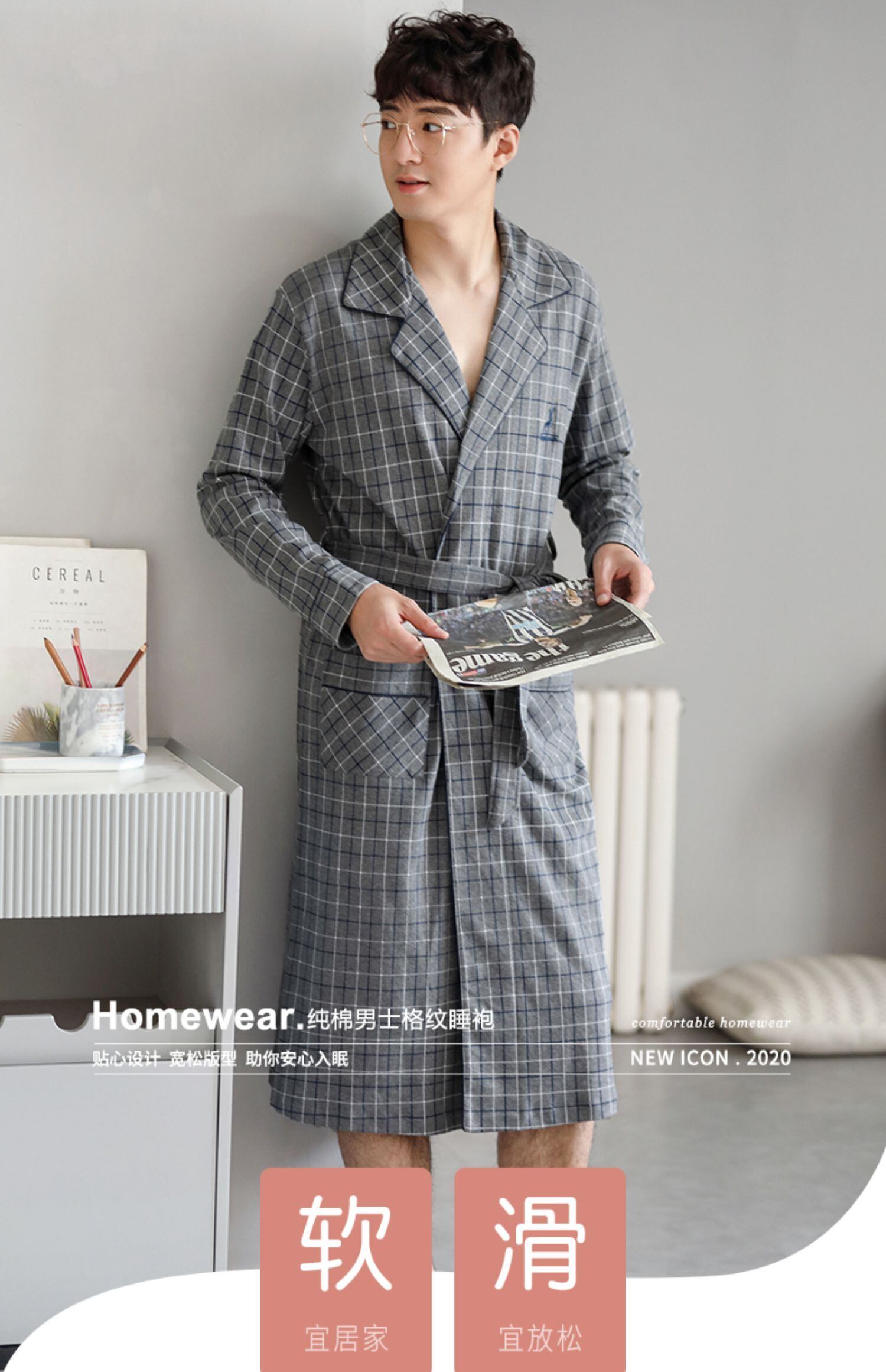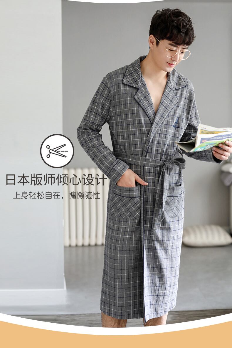 メンズナイトガウンコットン長袖プラスファットプラスサイズのバスローブ春と秋のバスローブは、長い秋と冬のパジャマを統合しました jial39029646695