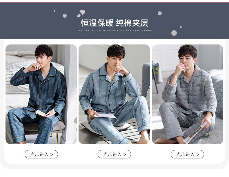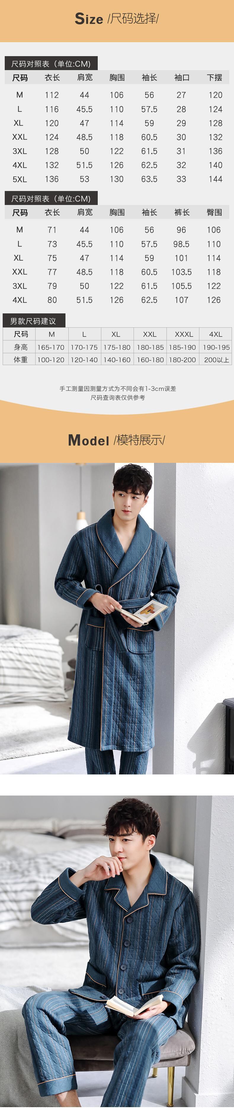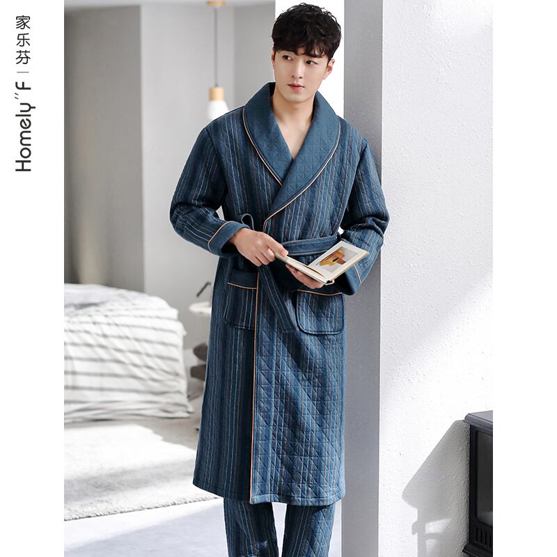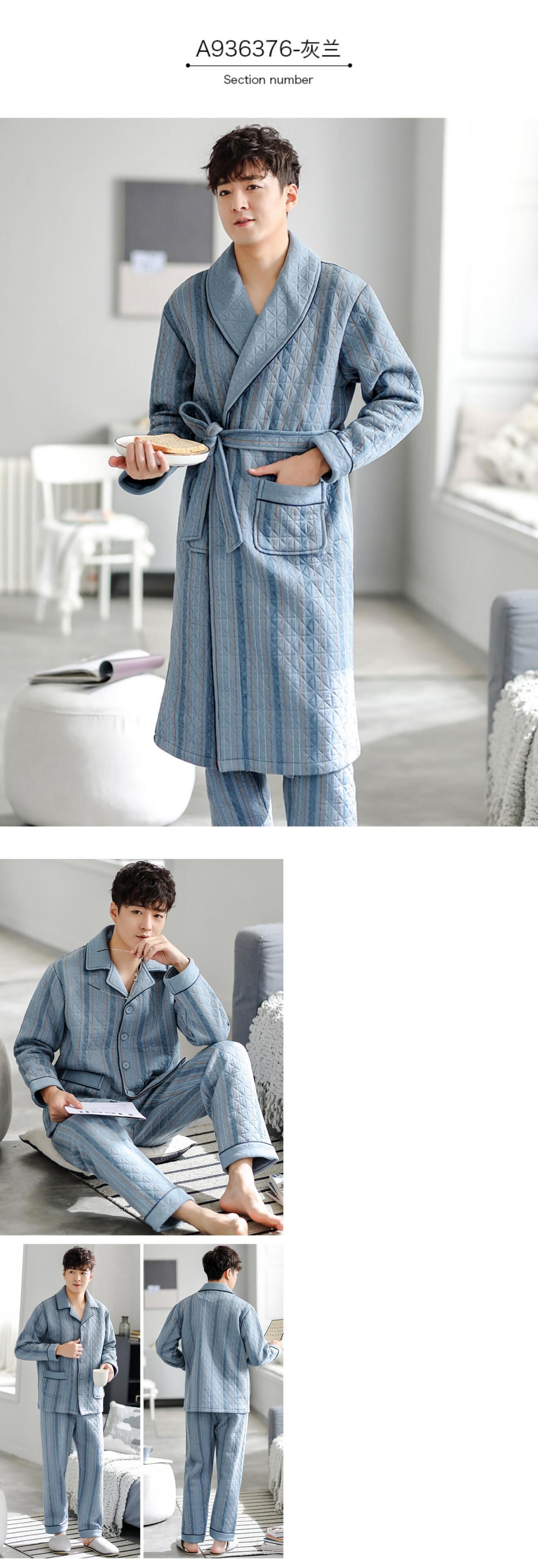 ナイトガウンメンズパジャマ春と秋厚手の純綿秋と冬冬キルティング中間層バスローブロングオールインワンスーツ jial34482766683