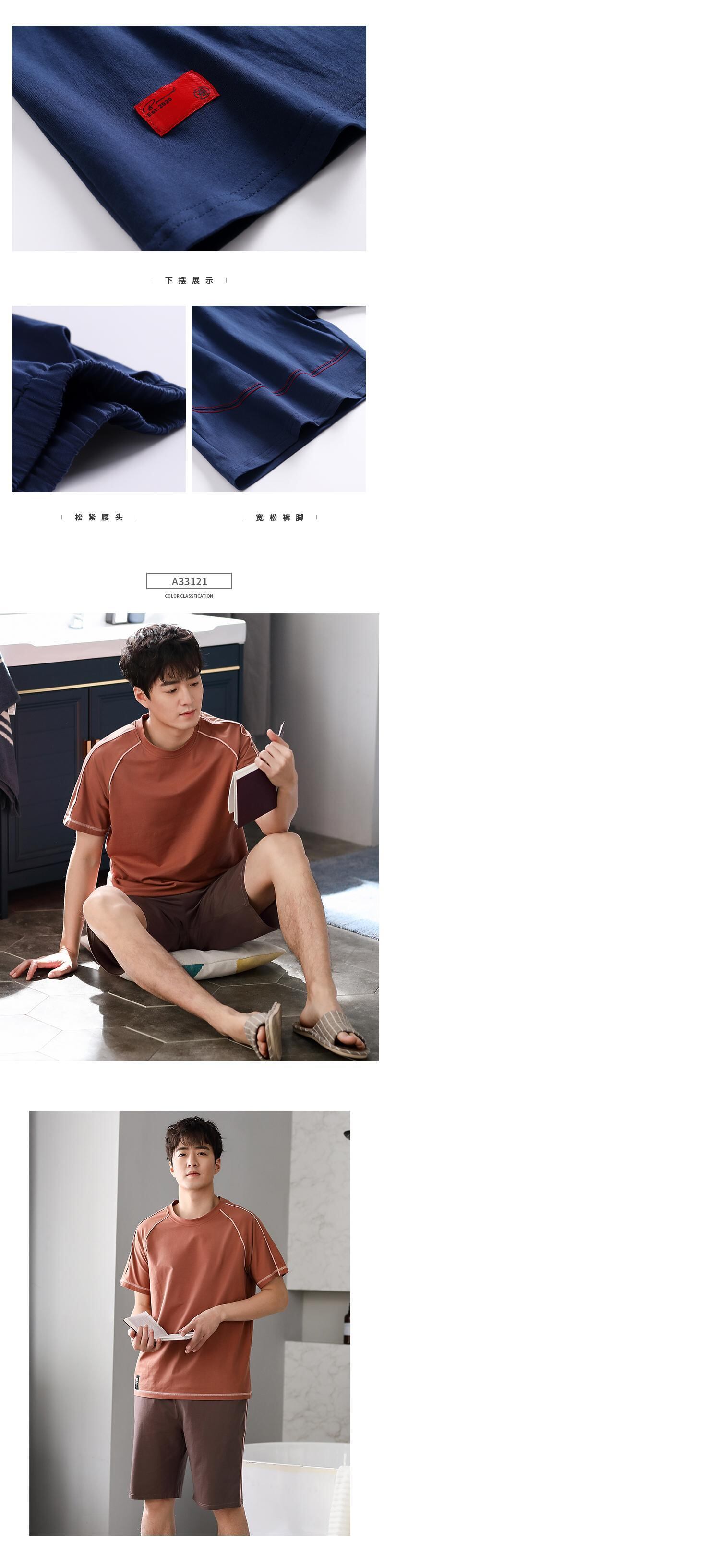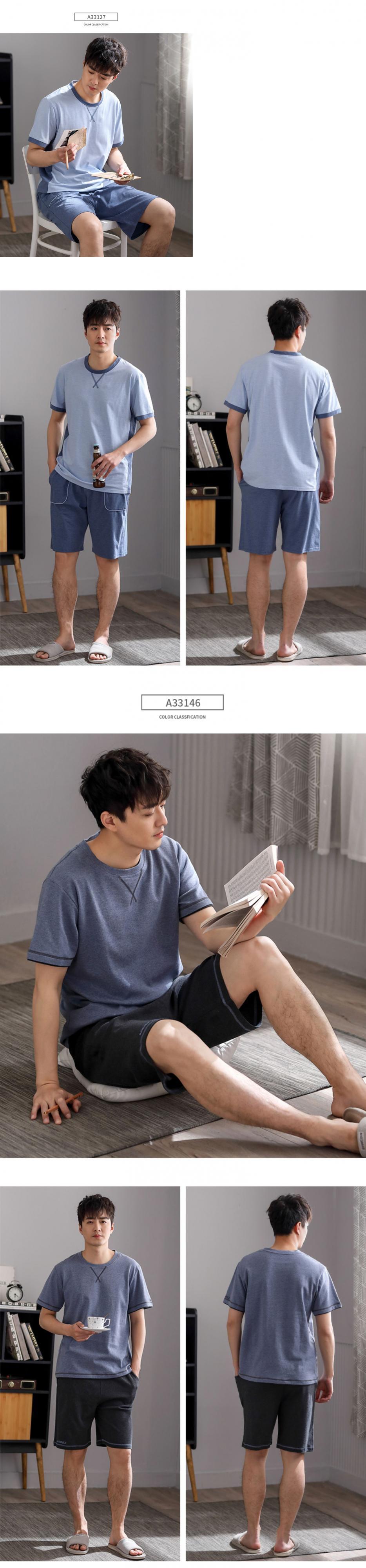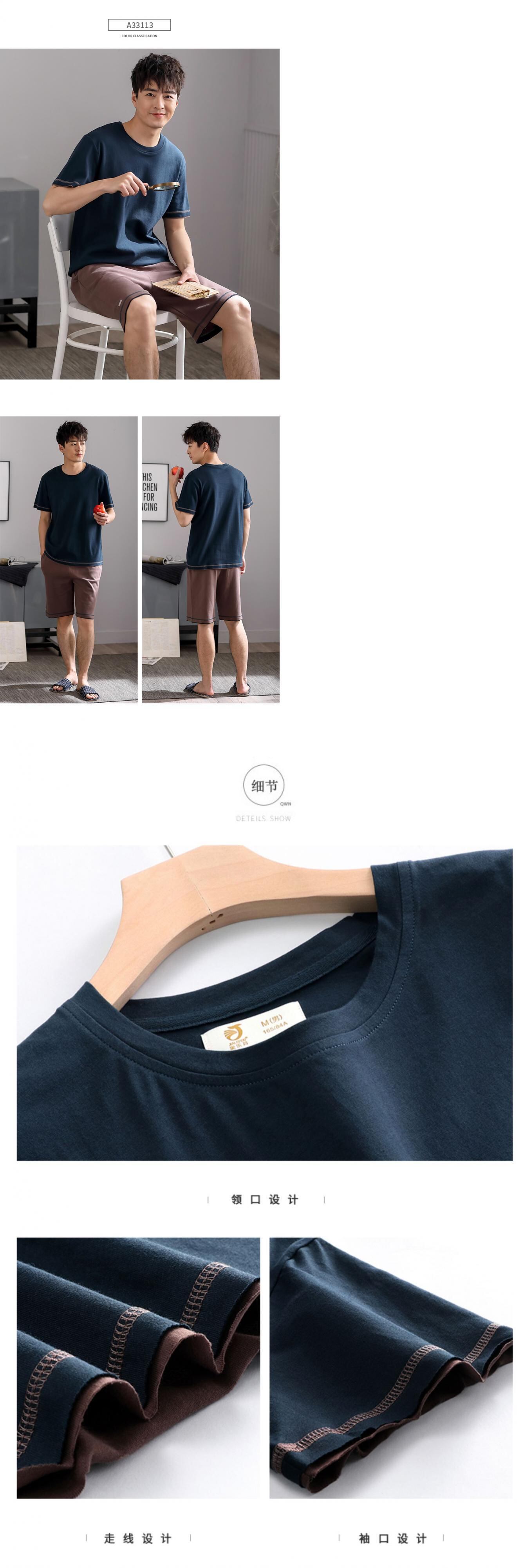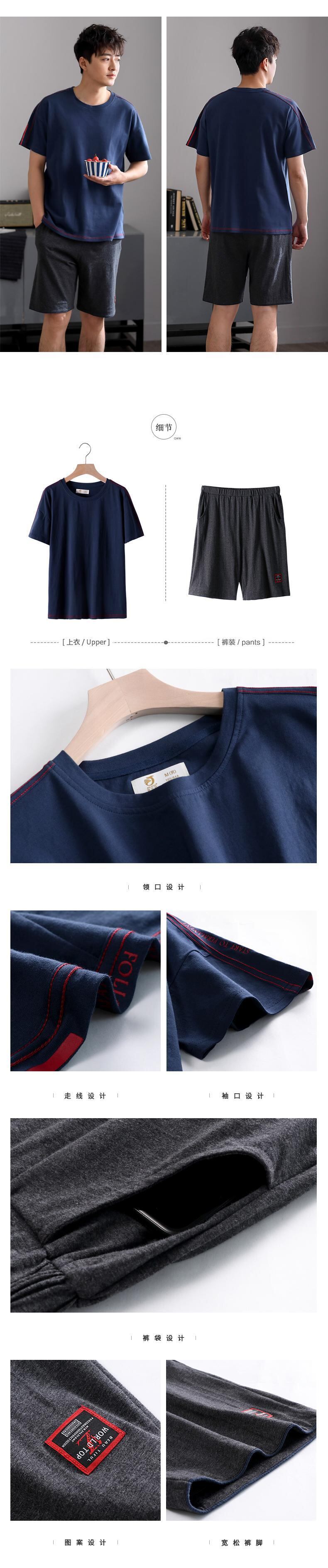 パジャマメンズサマーコットン半袖ショーツホームサービスメンズサマー薄手のコットンカジュアルスーツ、屋外で着用可能 jial2764668638
