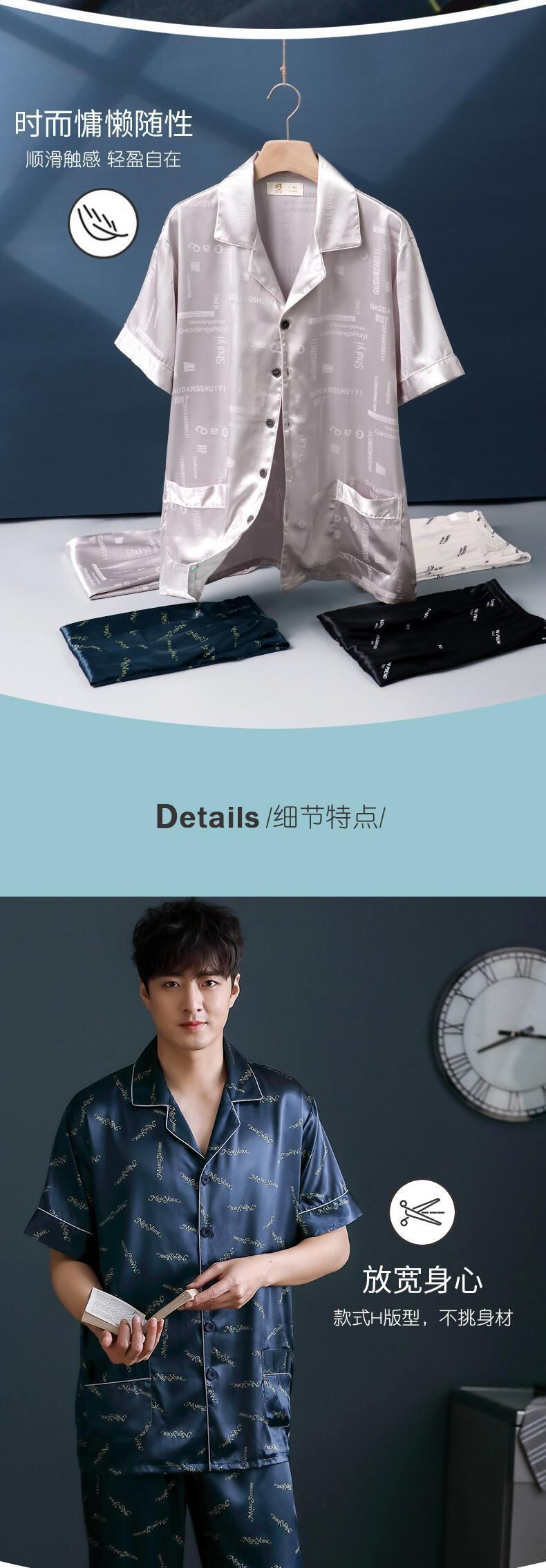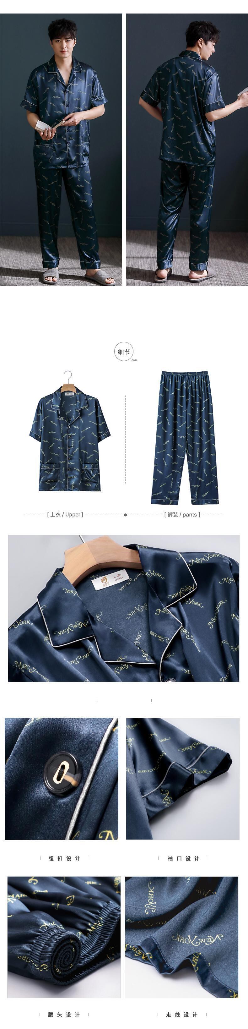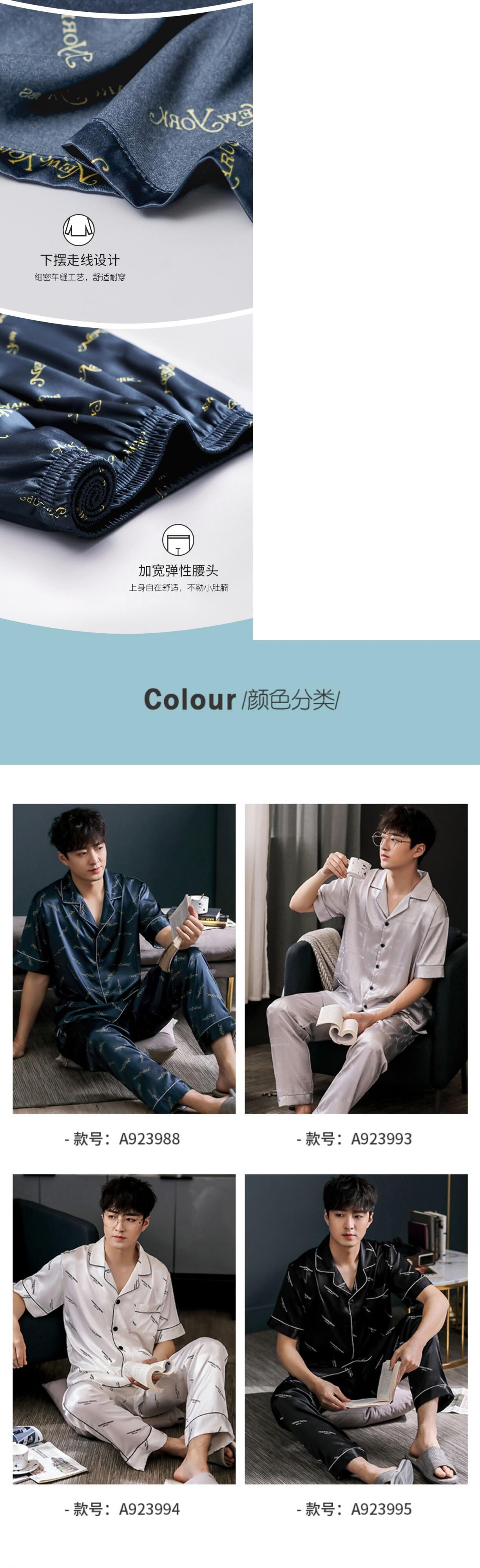 Jialefenパジャマメンズサマーシルクアイスシルク半袖パンツホームサービスサマーシンシミュレーションシルクスーツ jial51512340027