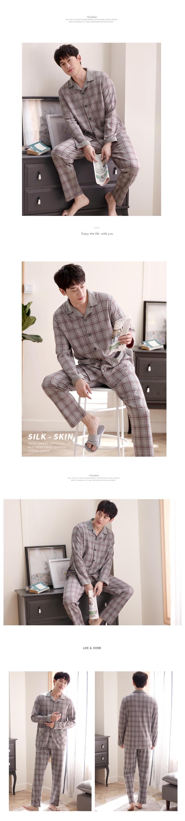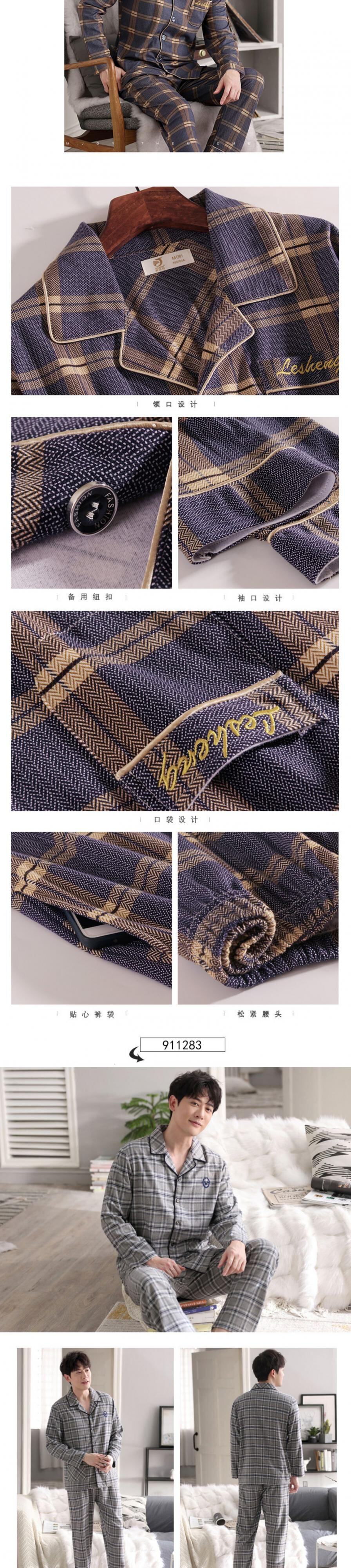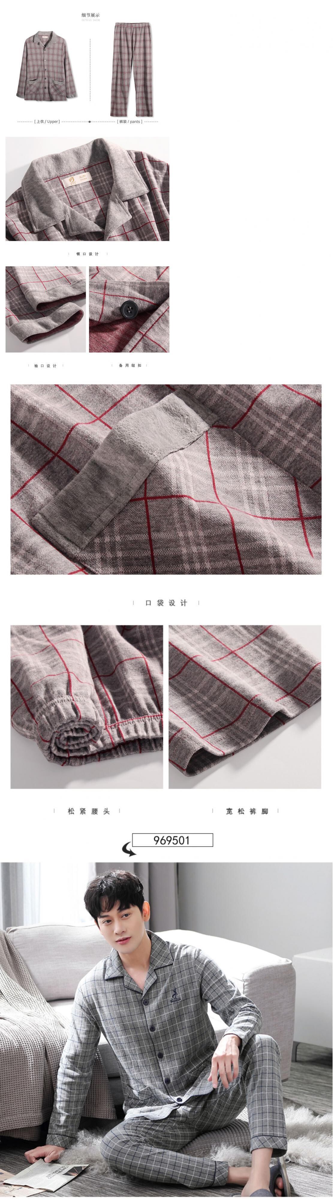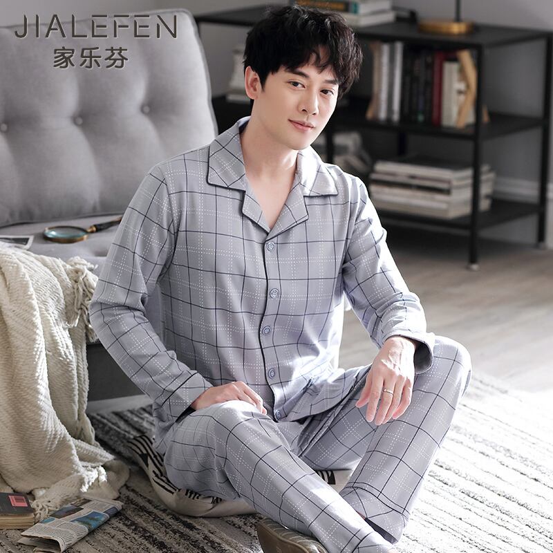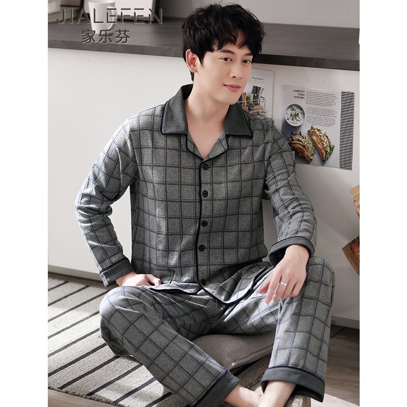 パジャマメンズ春秋コットン長袖家庭服メンズルーズプラスファットプラスサイズ中年お父さん中高年 jial29257024914