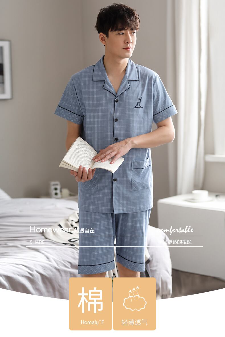 パジャマメンズサマーコットン半袖ショーツホームサービスメンズサマー薄手コットンカーディガンプラスサイズスーツ jial88398812046