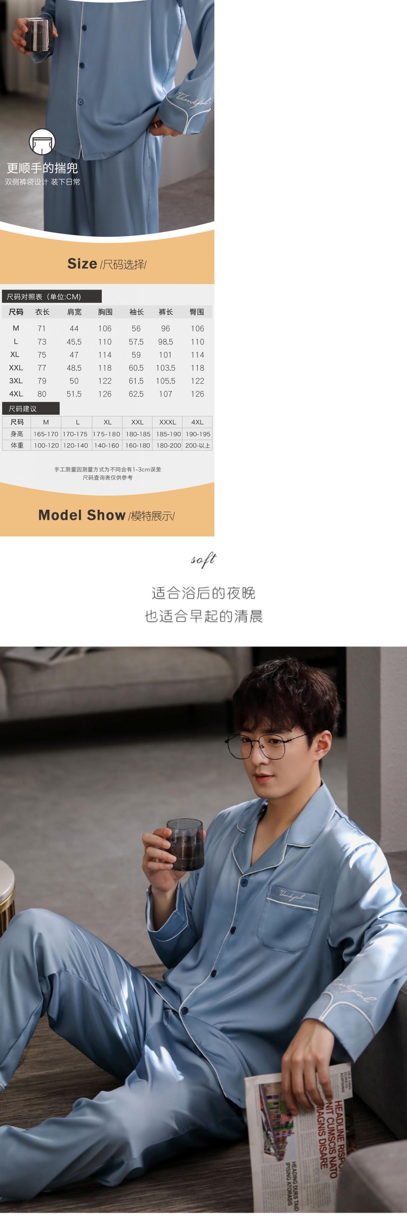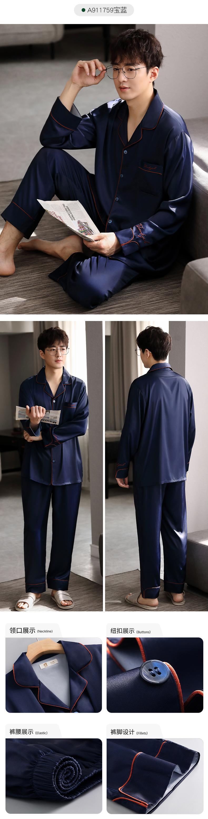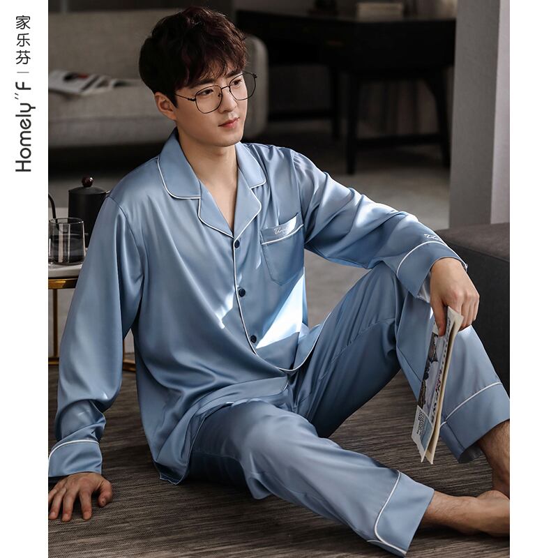 パジャマメンズ春夏シルクアイスシルク長袖ホームサービス夏薄春秋モデル秋のシルクスーツ jial22574671863
