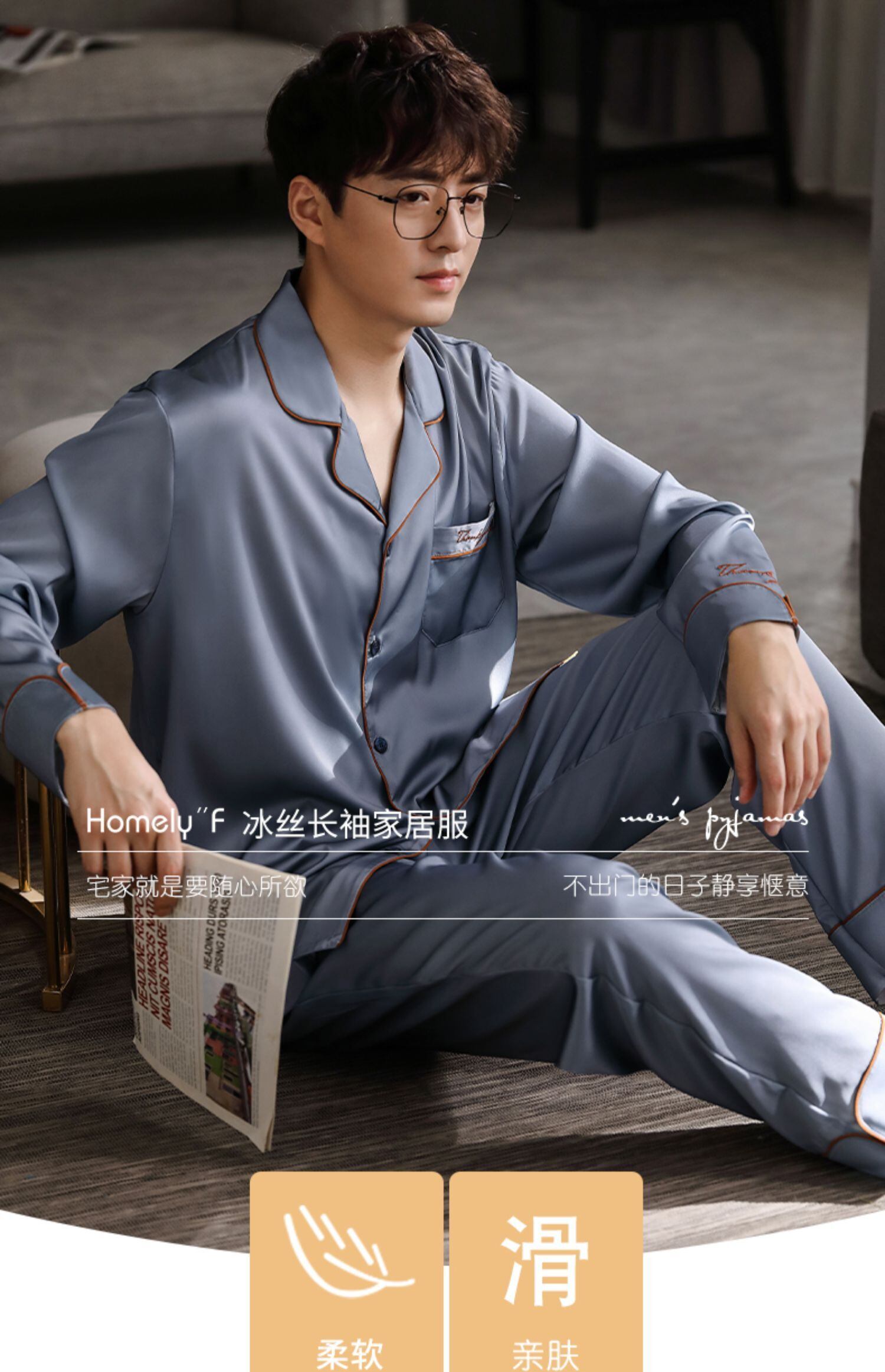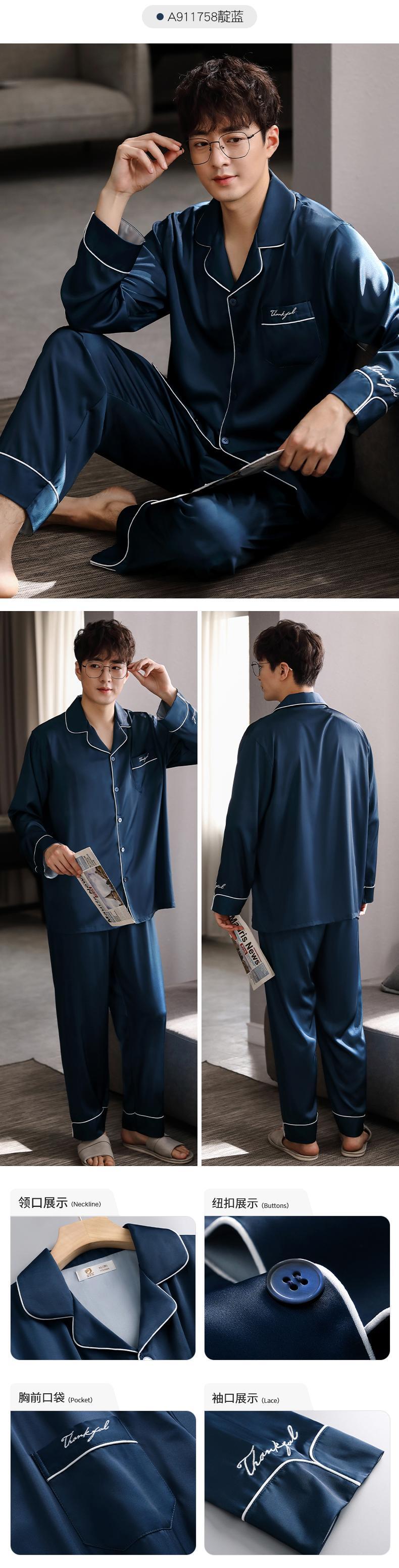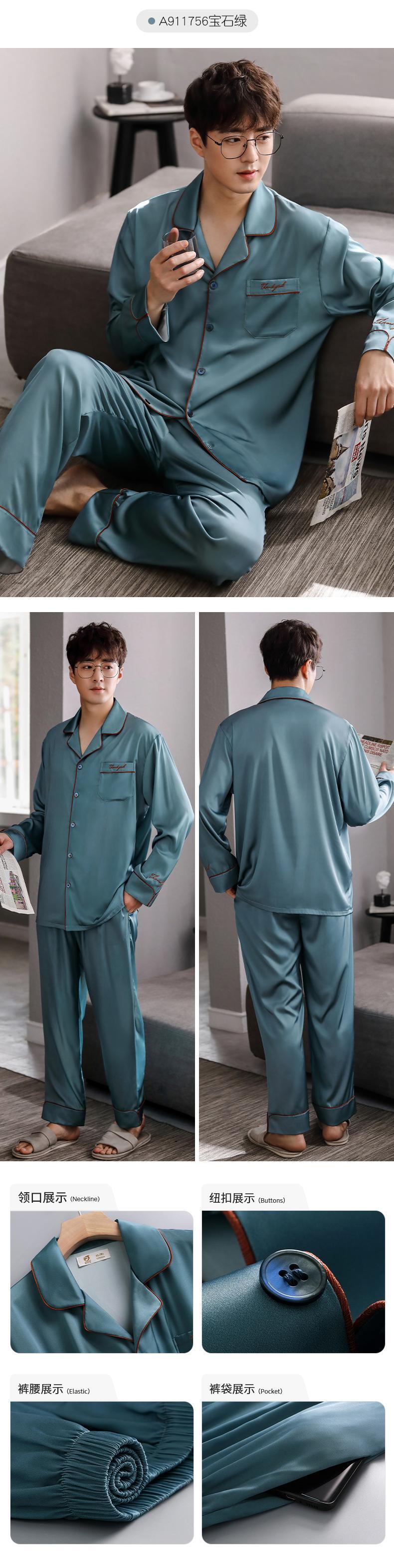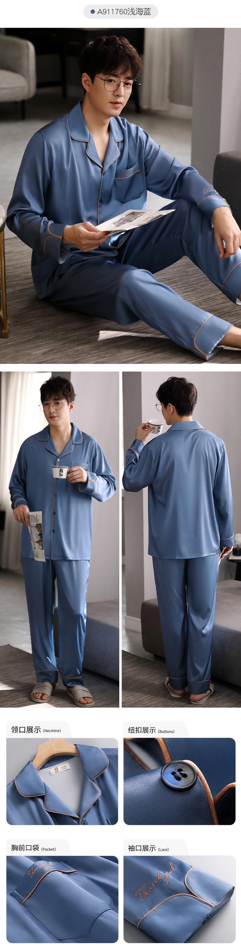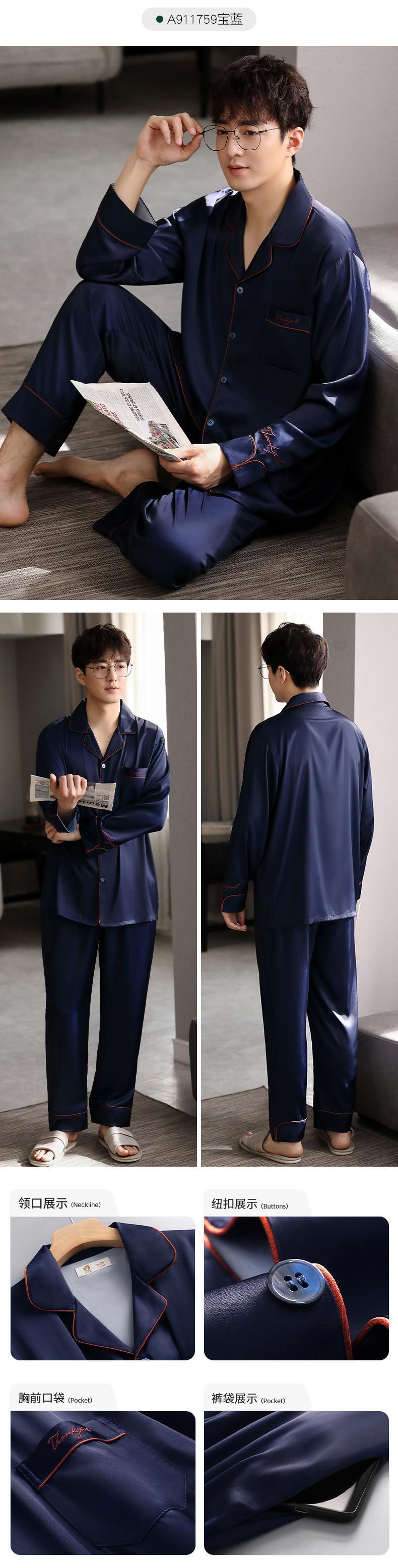 パジャマメンズ春夏シルクアイスシルク長袖ホームサービス夏薄春秋モデル秋のシルクスーツ jial99137423705
