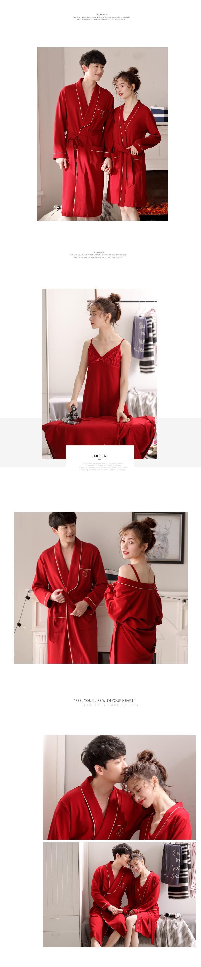 春と秋のスポンジボブパジャマメンズナイトガウンピュアコットンレッドお祭りlyweds結婚式長袖大サイズルーズバスローブ jial25557852688