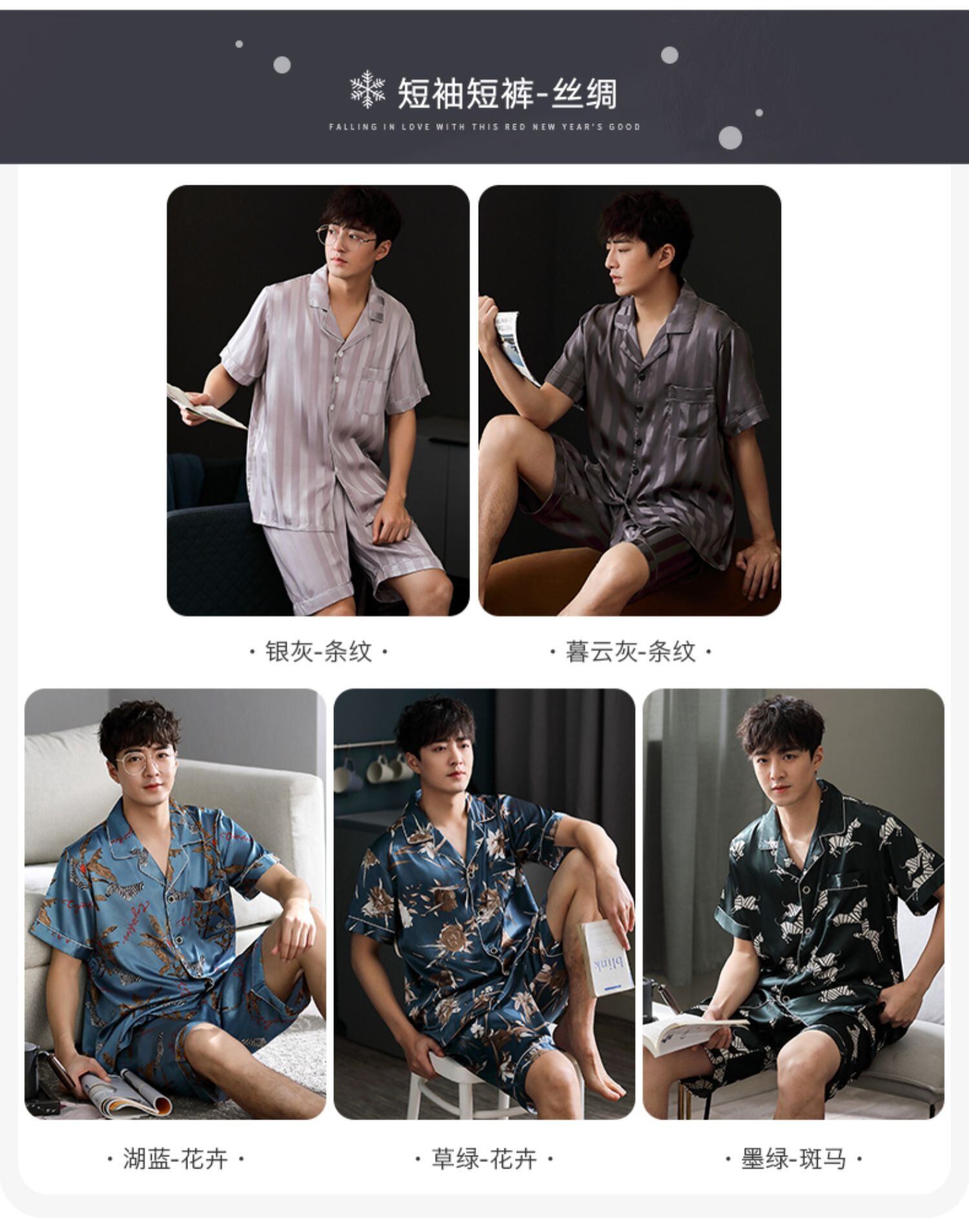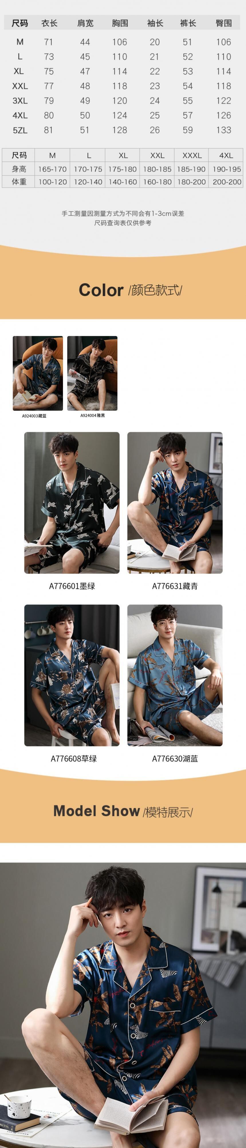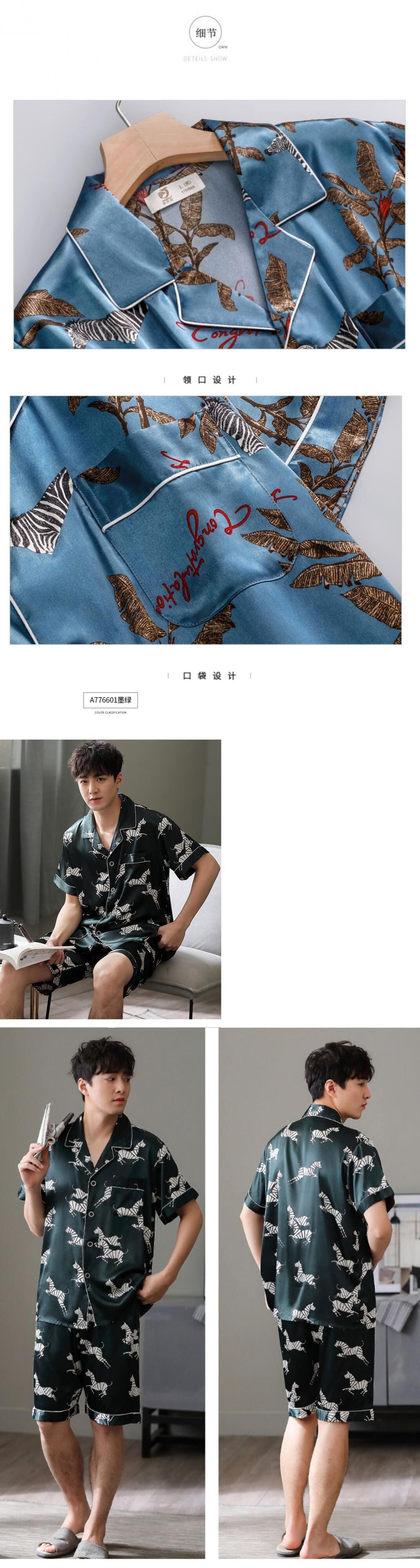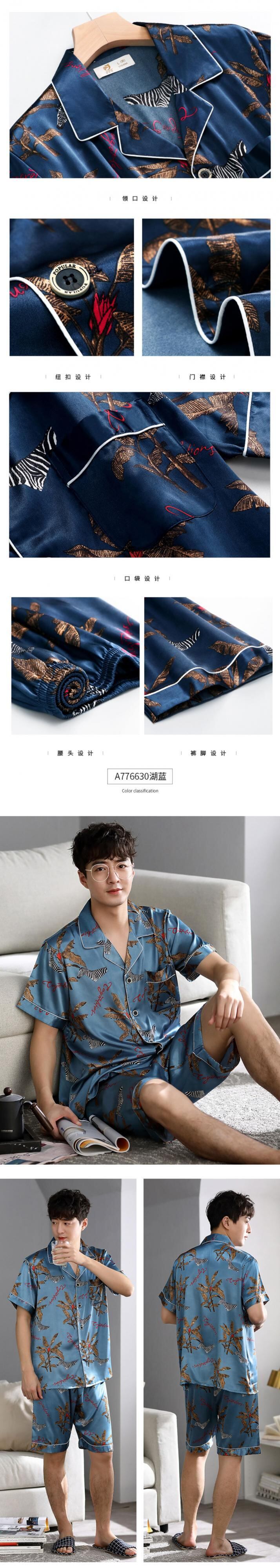 パジャマメンズサマーシルクアイスシルク半袖ショーツホームサービスメンズサマー薄切片模造シルクユーススーツ jial67357957283