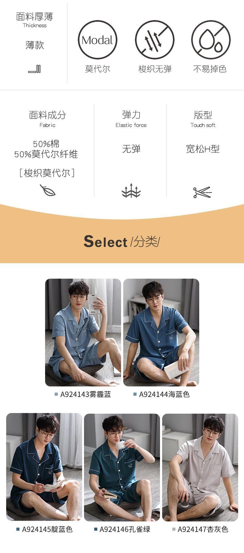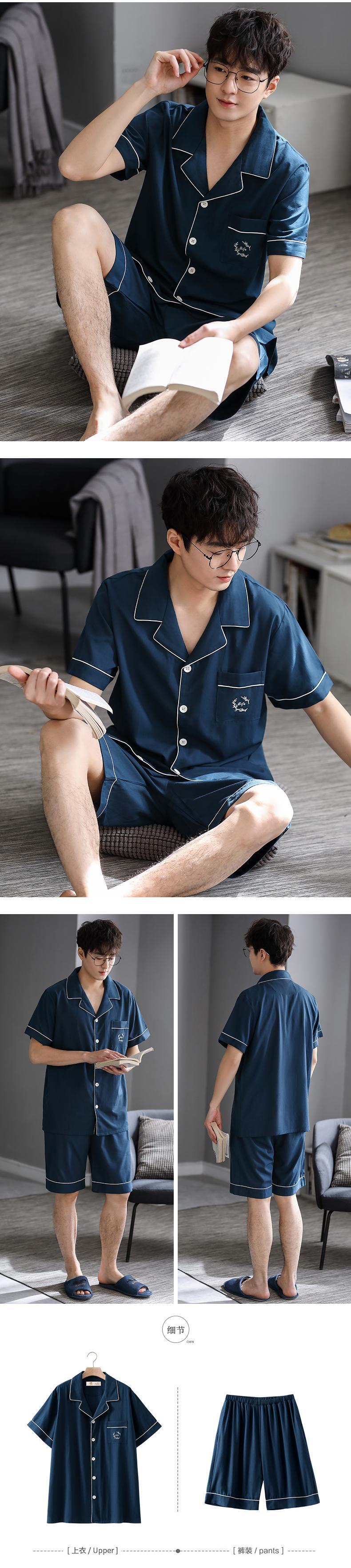 Lenzingモーダルパジャマメンズサマー半袖ショーツカーディガンホームサービスメンズサマー薄型ラージサイズスーツ jial40367765570