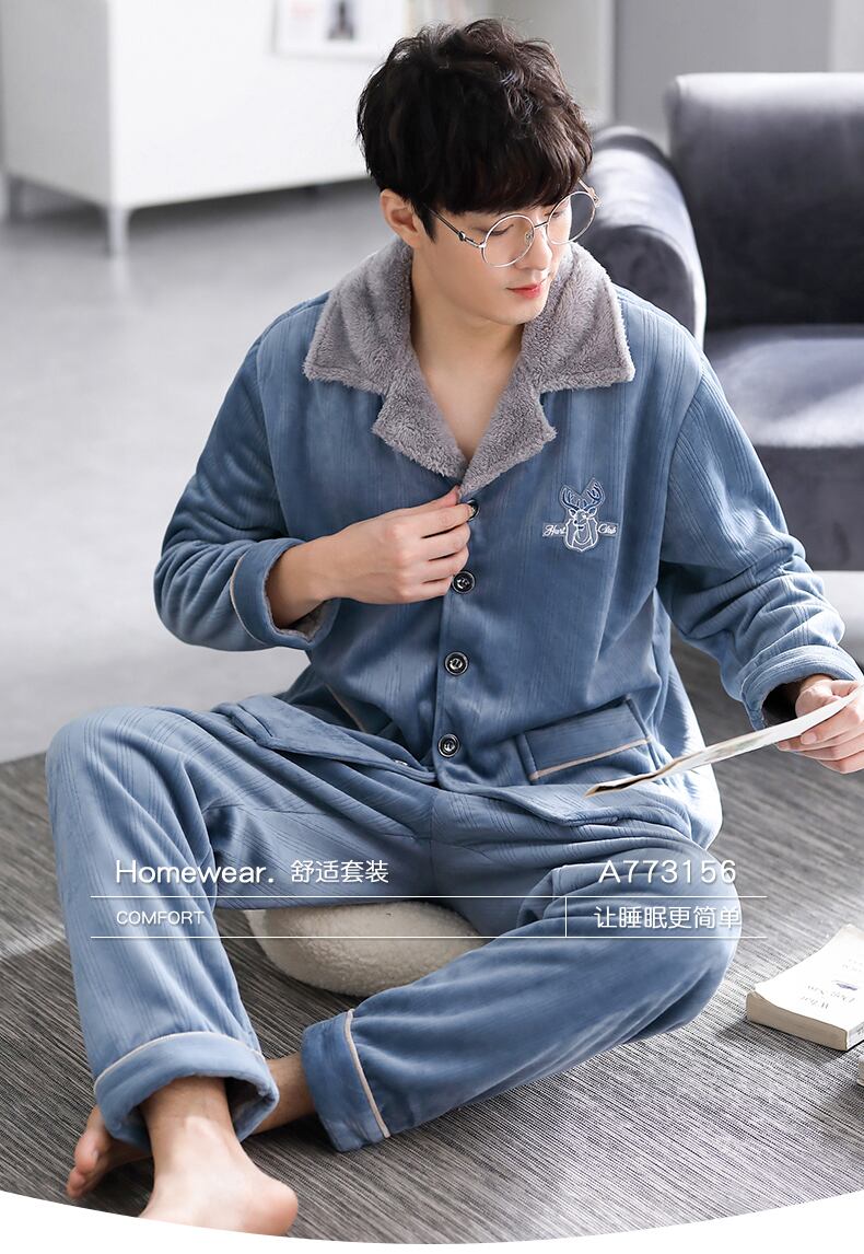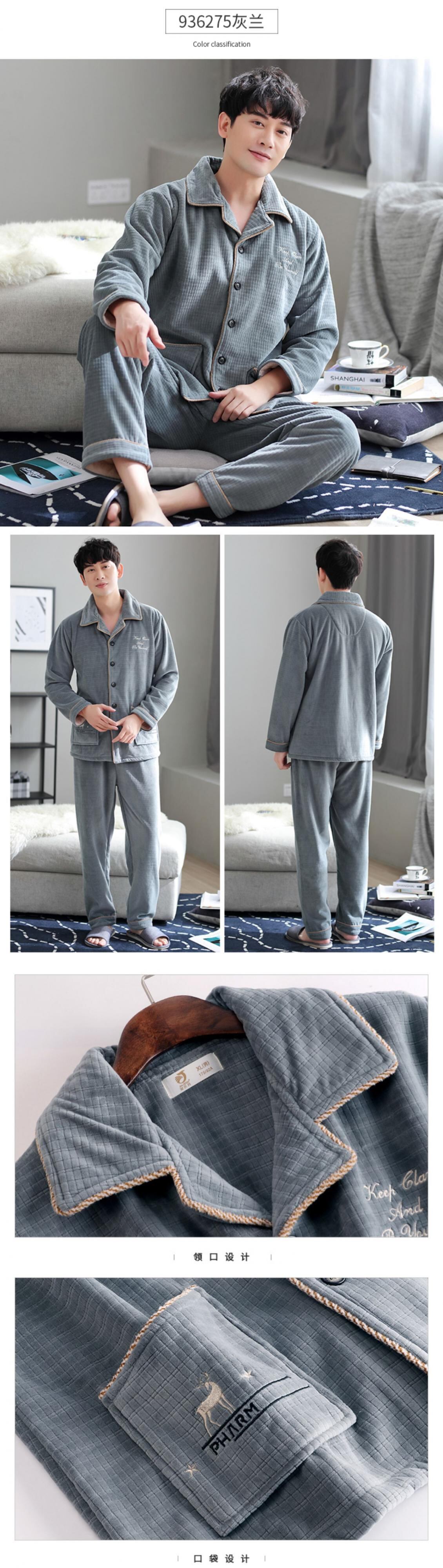 冬のパジャマメンズ秋冬モデルコーラルフリースコンポジットキルティングシックニングプラスベルベットウォームフランネルホームサービス冬 jial5880040550