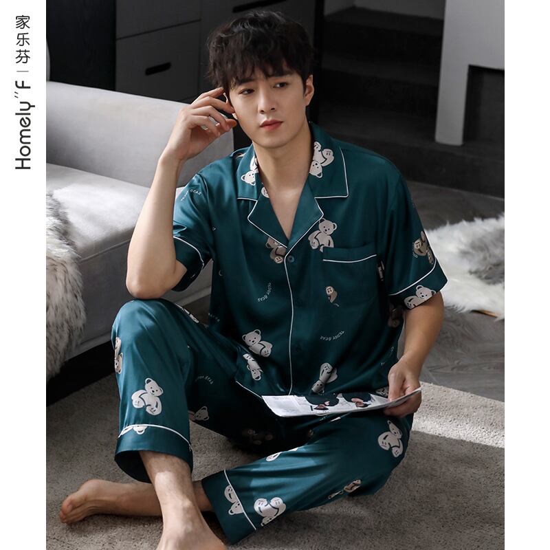 パジャマメンズサマーシルクアイスシルク半袖パンツホームサービス夏薄切り模造シルク漫画ユーススーツ jial43871501806