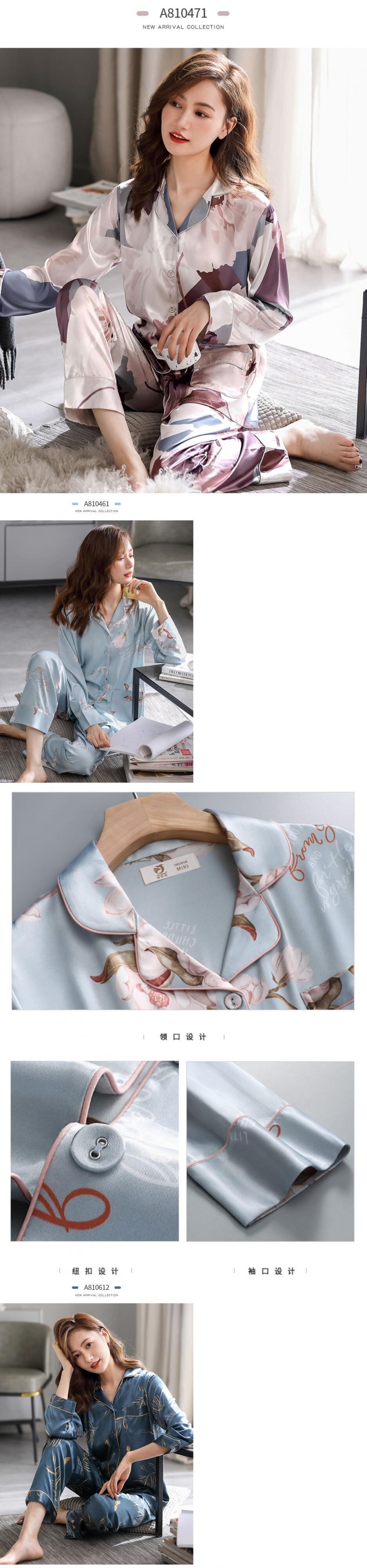 パジャマレディース春夏シルクアイスシルク長袖ホームサービスレディース春秋秋薄断面マザーツーピーススーツ jial12738062156