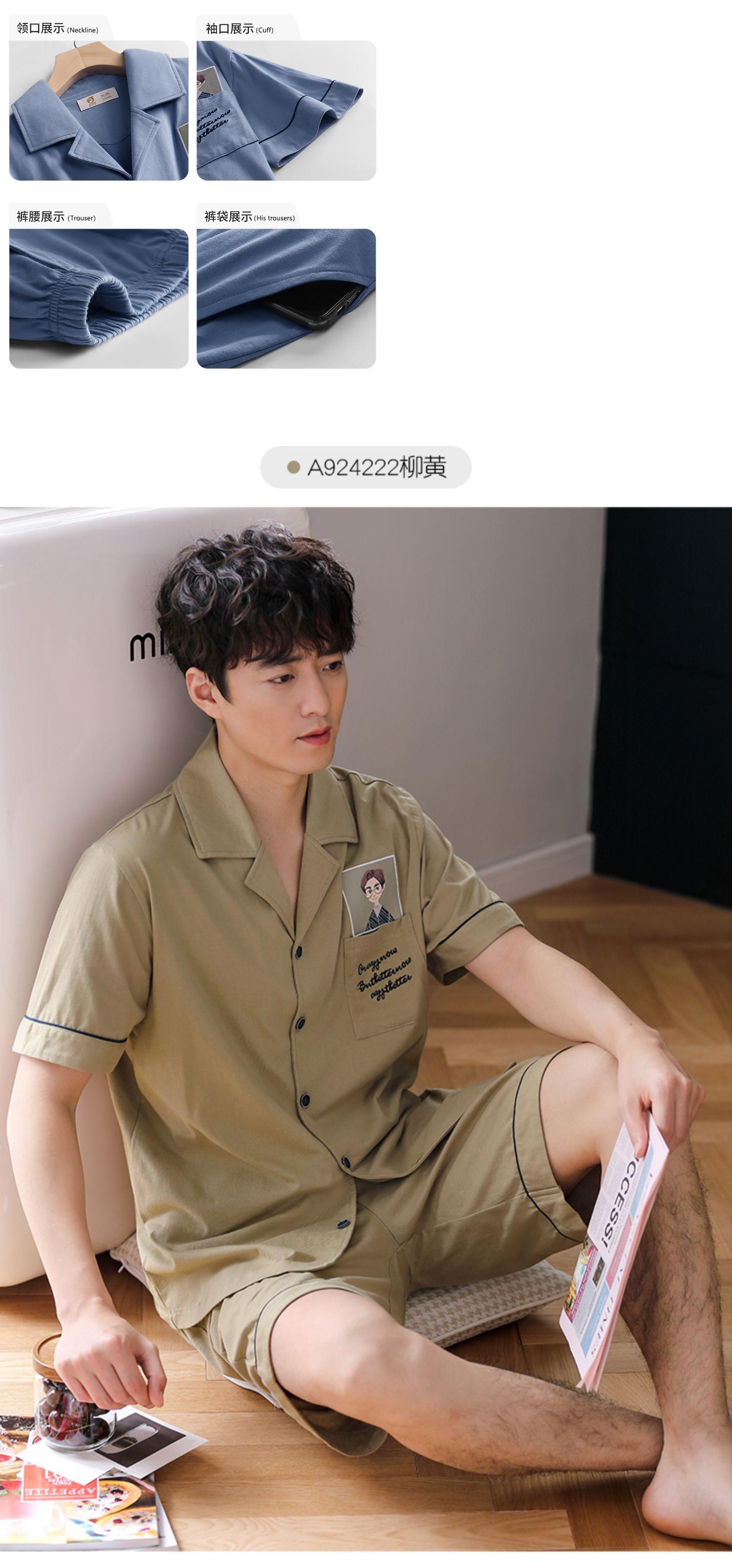 2021年新作パジャマメンズサマーコットン半袖ショーツホームサービスメンズサマー薄手コットンスーツ jial17010209611