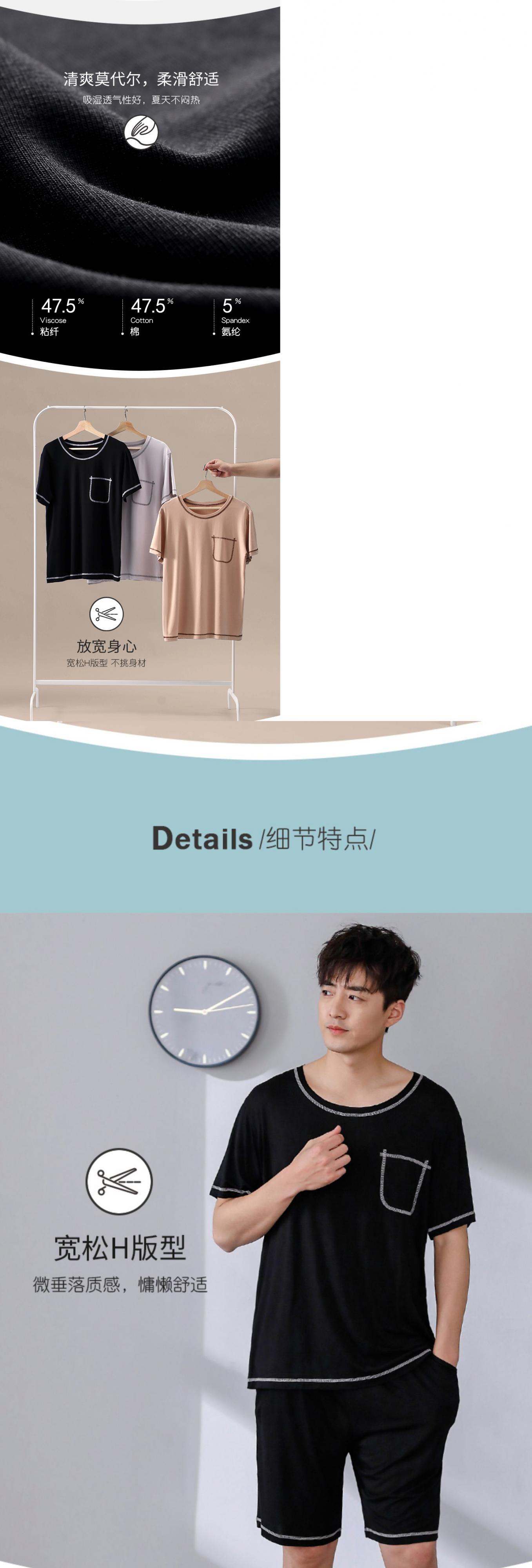 パジャマメンズサマーモーダルコットン半袖ショーツホームサービスアイスシルククールサマーシンブラックスーツ jial4185446758