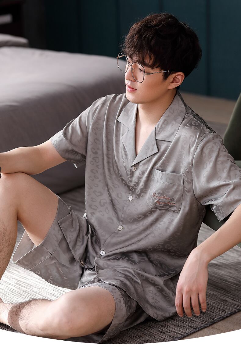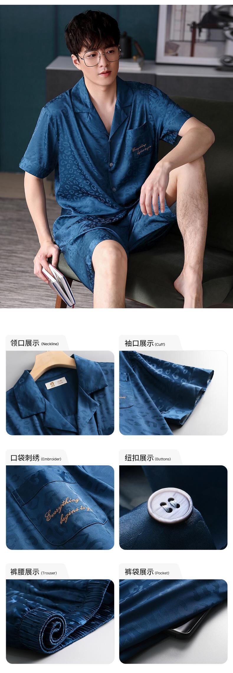 パジャマメンズサマーアイスシルク半袖ショーツシルクホームサービスメンズサマー薄切りイミテーションシルクプラスサイズ jial65884944511