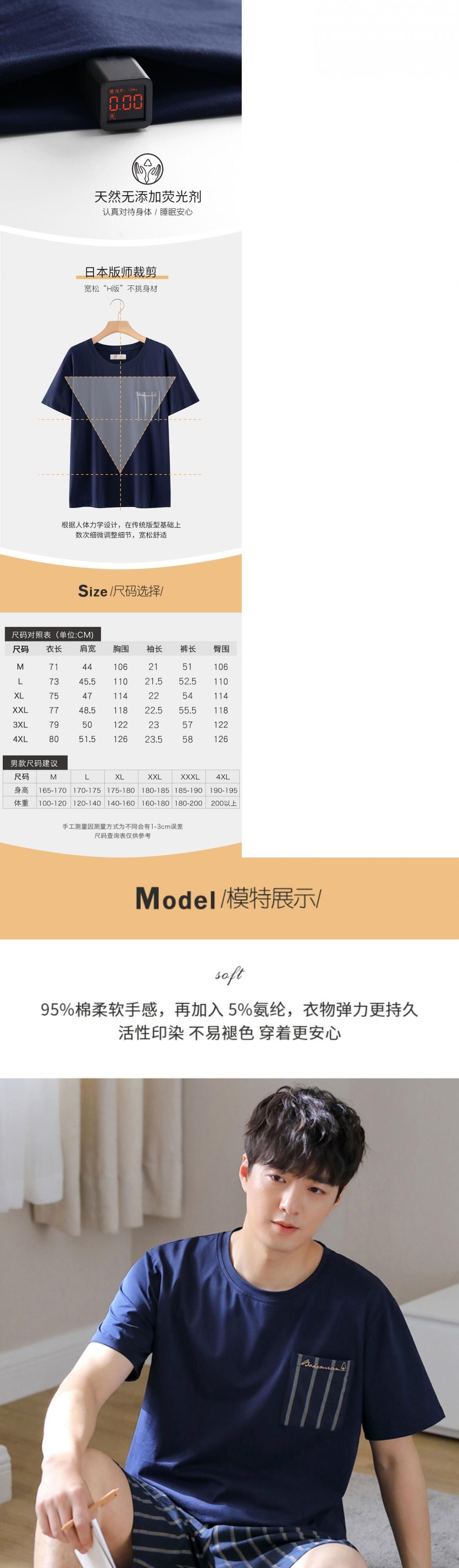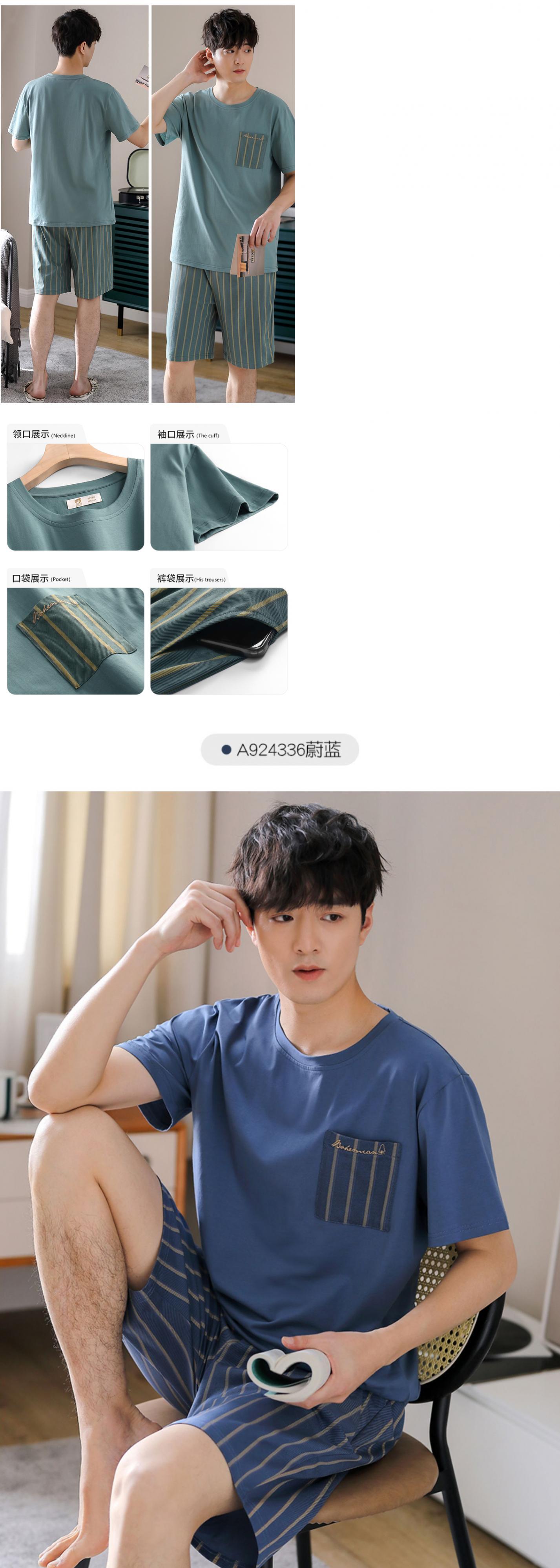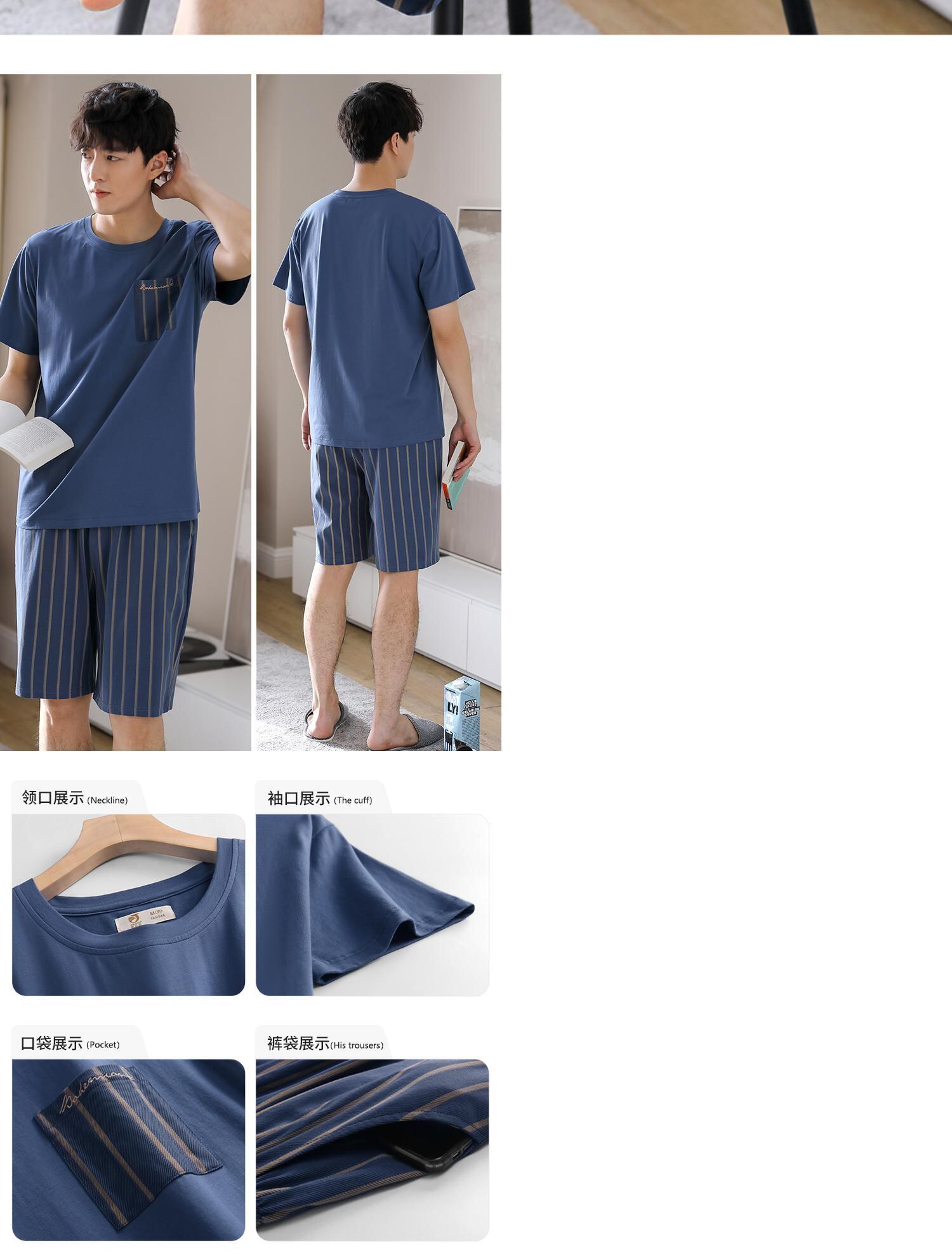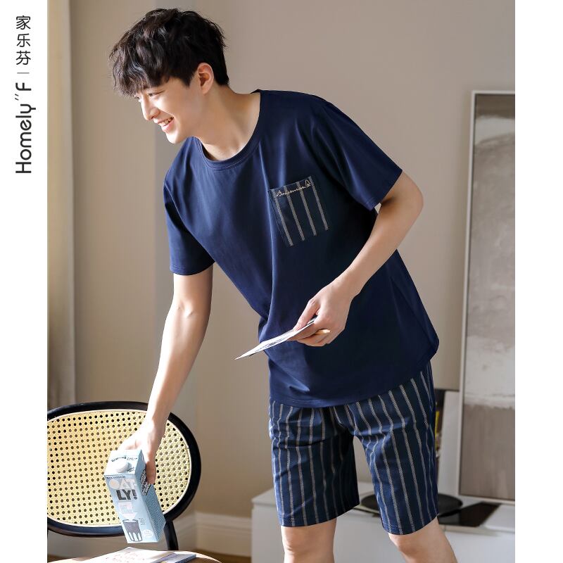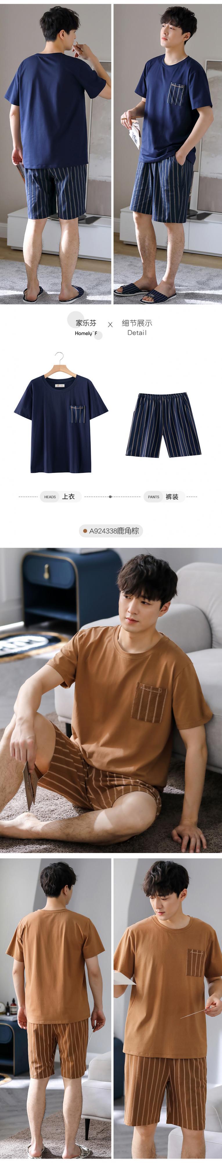 パジャマメンズサマーコットン半袖ショーツホームサービスメンズサマー薄手コットンカジュアルプラスサイズスーツ jial614615809