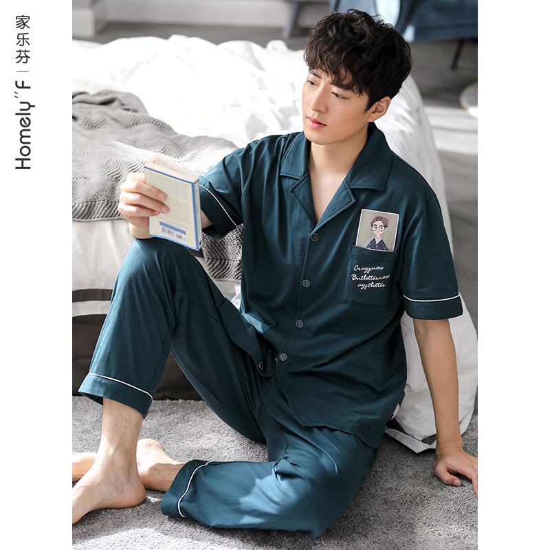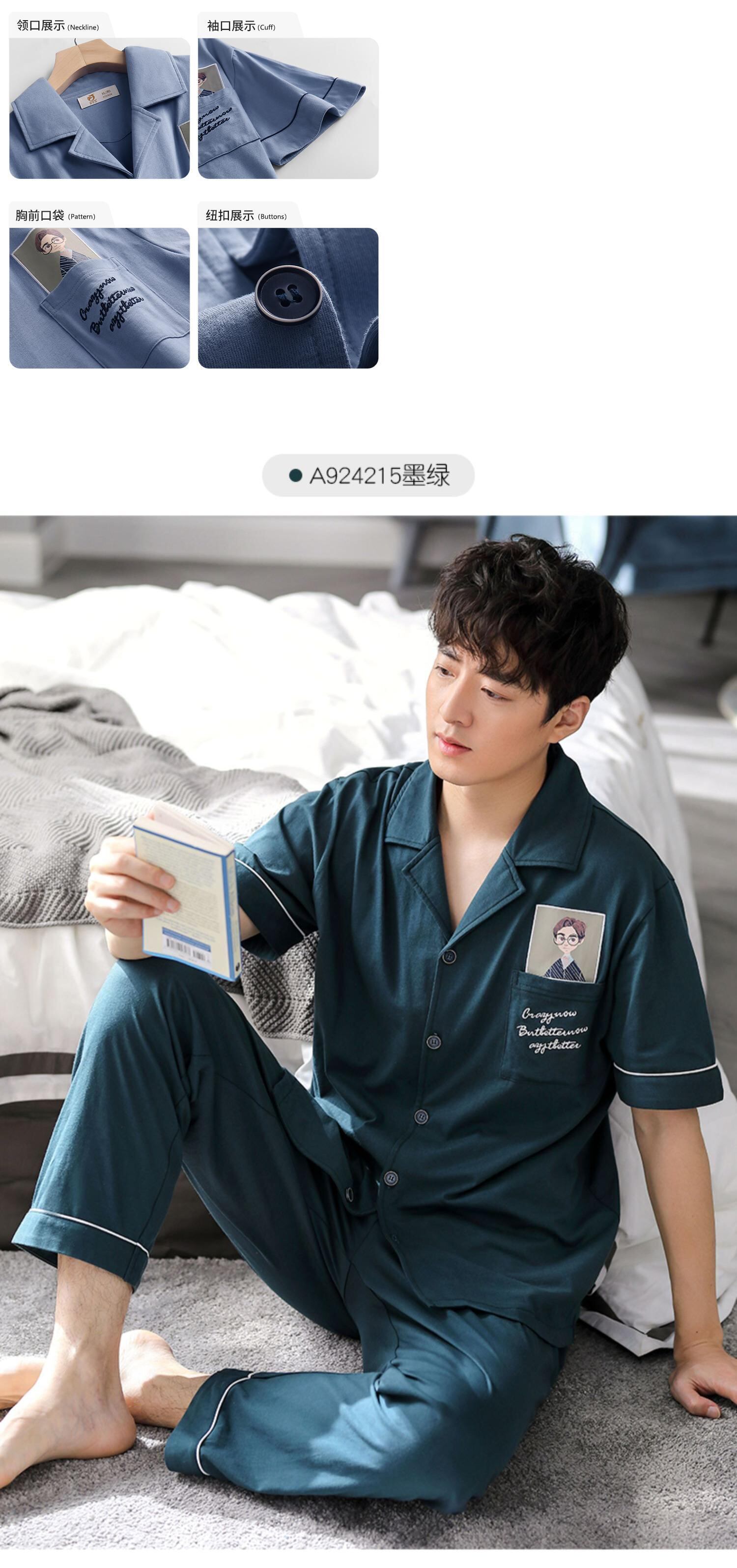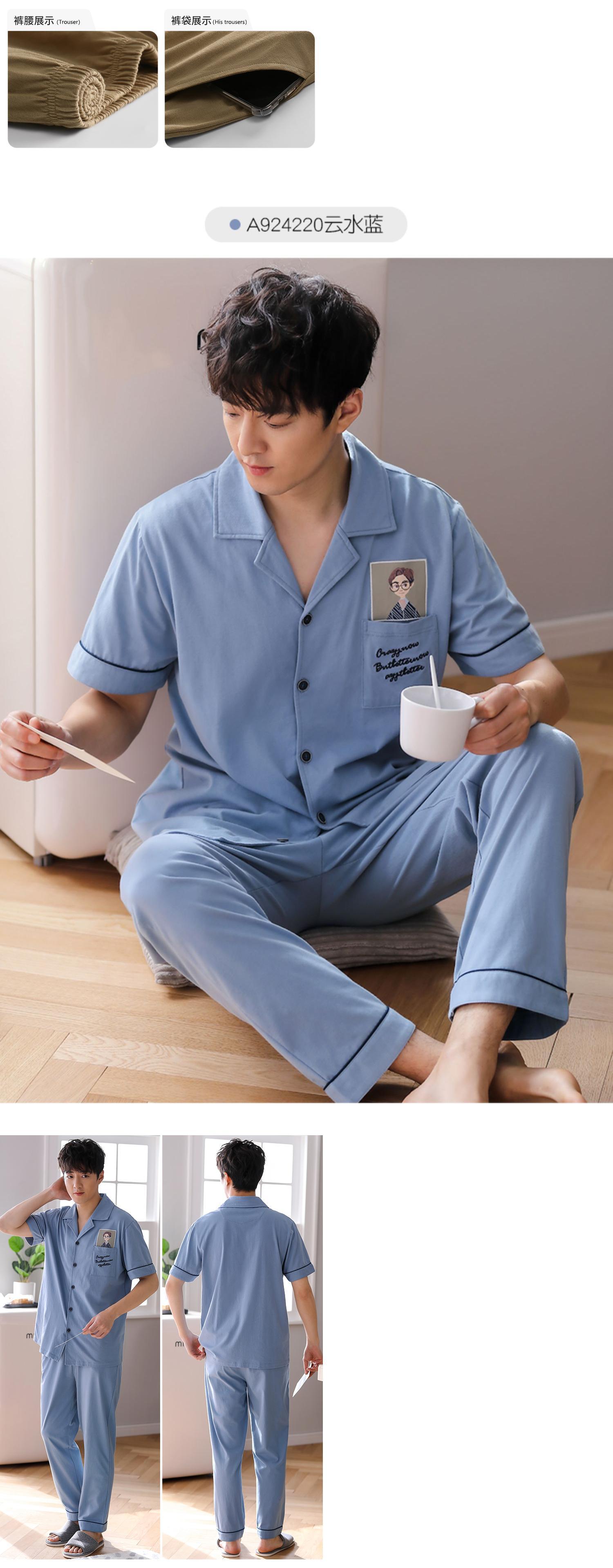 2021年新作パジャマメンズサマーコットン半袖パンツホームサービスメンズサマー薄手コットンスーツ jial61841932648