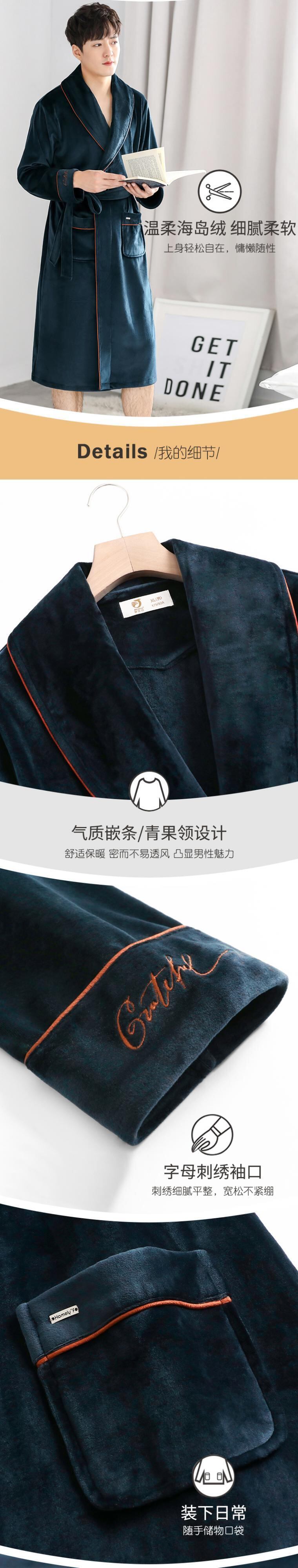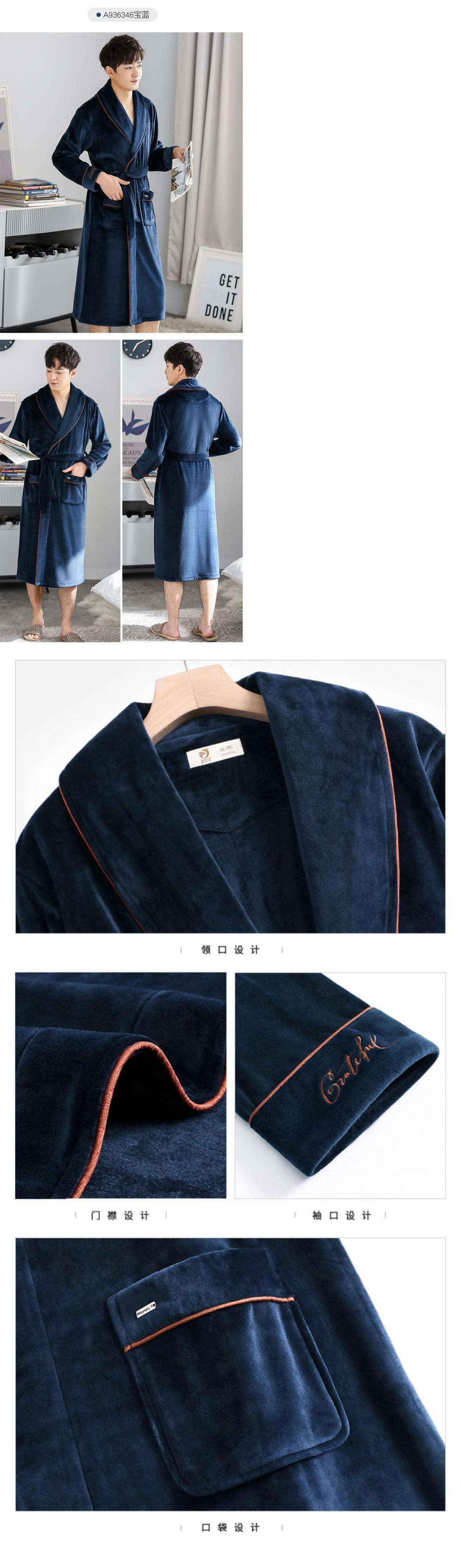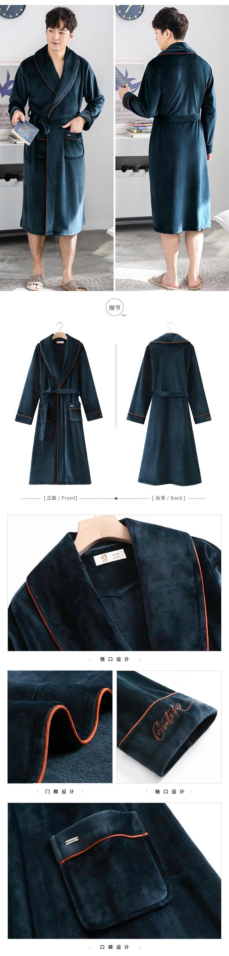 ナイトガウンメンズパジャマメンズバスローブ秋冬冬ロングコーラルフランネル厚手プラスフリースプラスサイズ jial97168086807