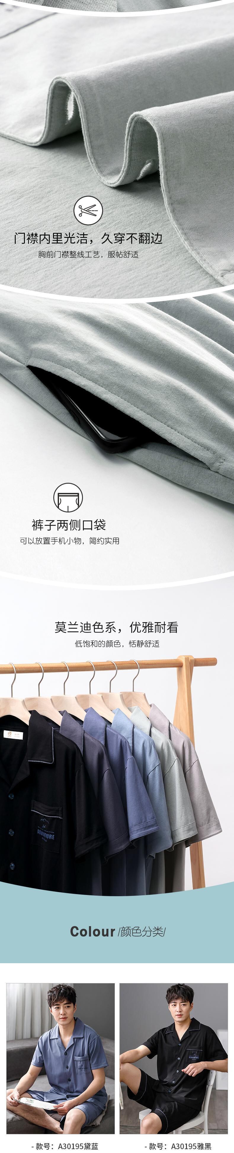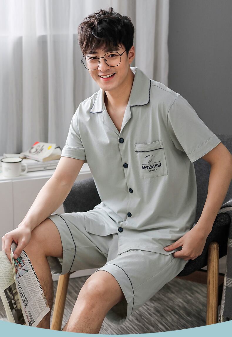 カルフールパジャマメンズサマーコットン半袖ショーツカーディガンホームサービスメンズサマー薄手コットンスーツ jial48958366482