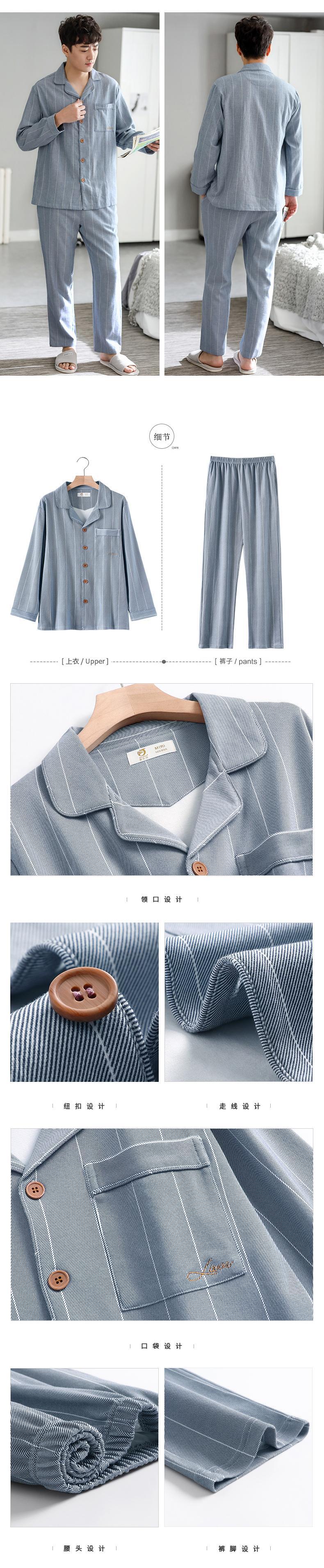 Jialefenパジャマメンズ春秋モデル秋コットン長袖ホームウェアコットンメンズ秋冬モデル冬薄モデル jial28865463732