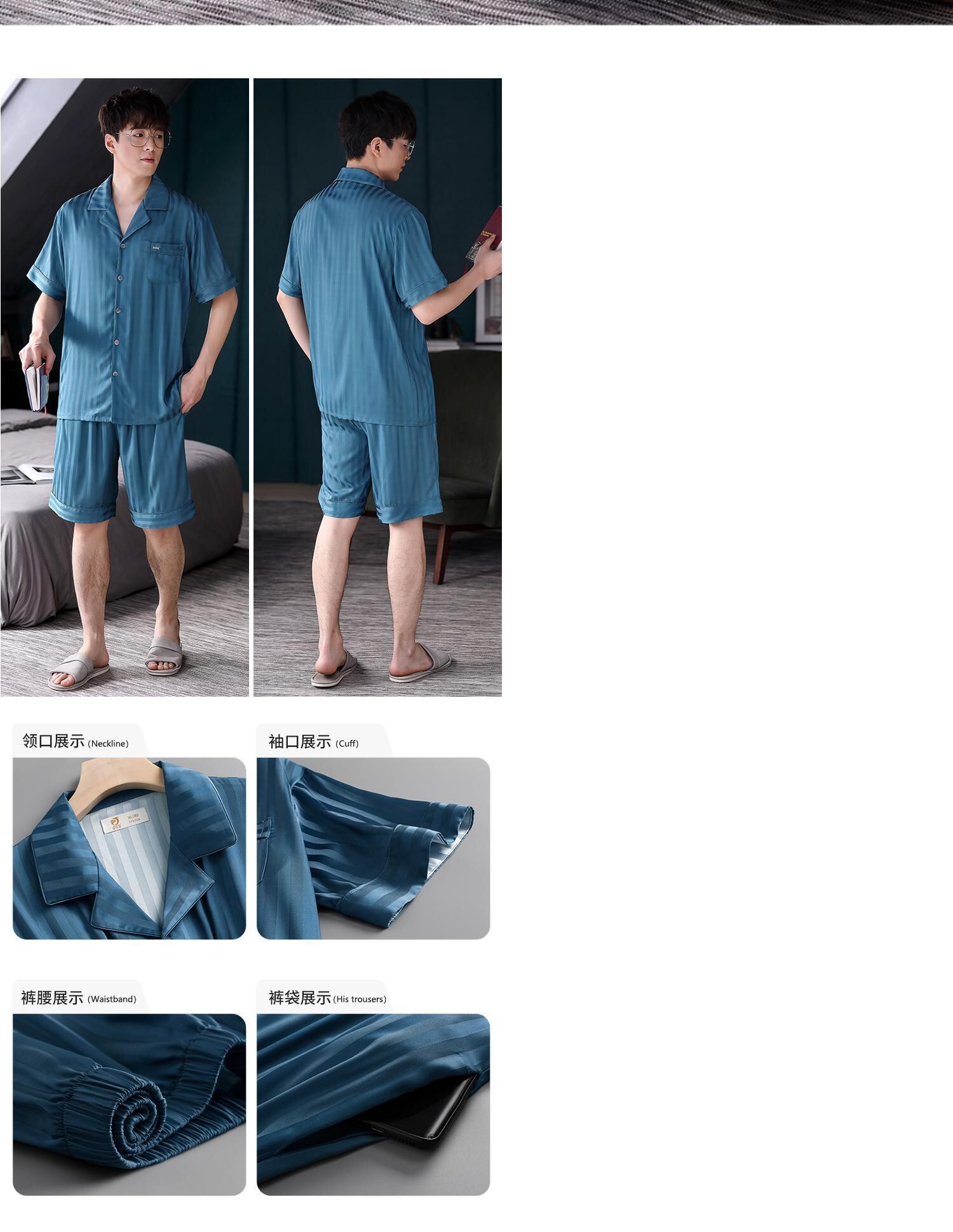 パジャマメンズサマーシルクアイスシルク半袖ショーツホームサービス夏薄人工シルク2021新作スーツ jial32365365974
