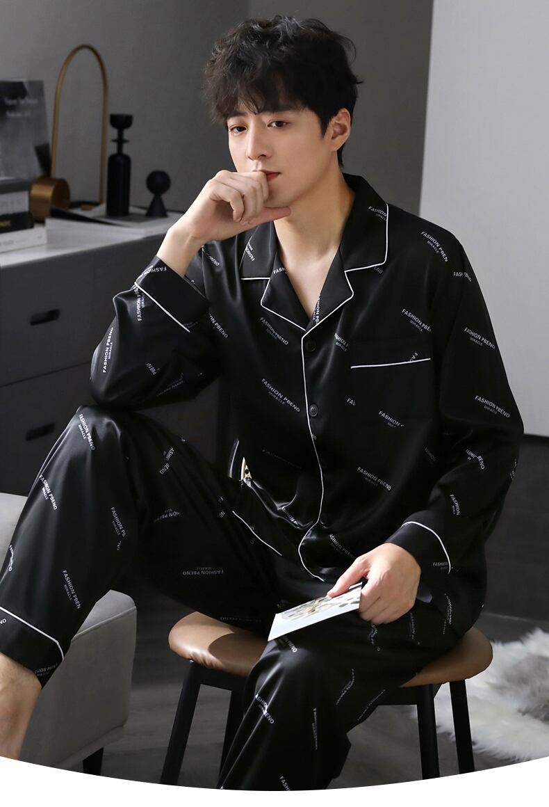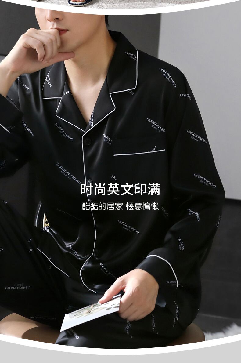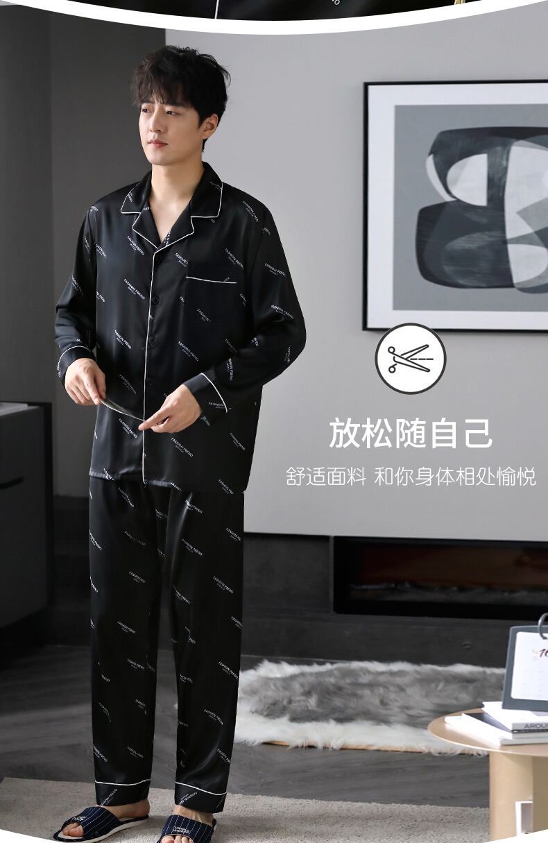 2021年新作パジャマメンズ春夏シルクアイスシルク長袖ホームウェア薄手春秋モデル秋シルク jial12537987606