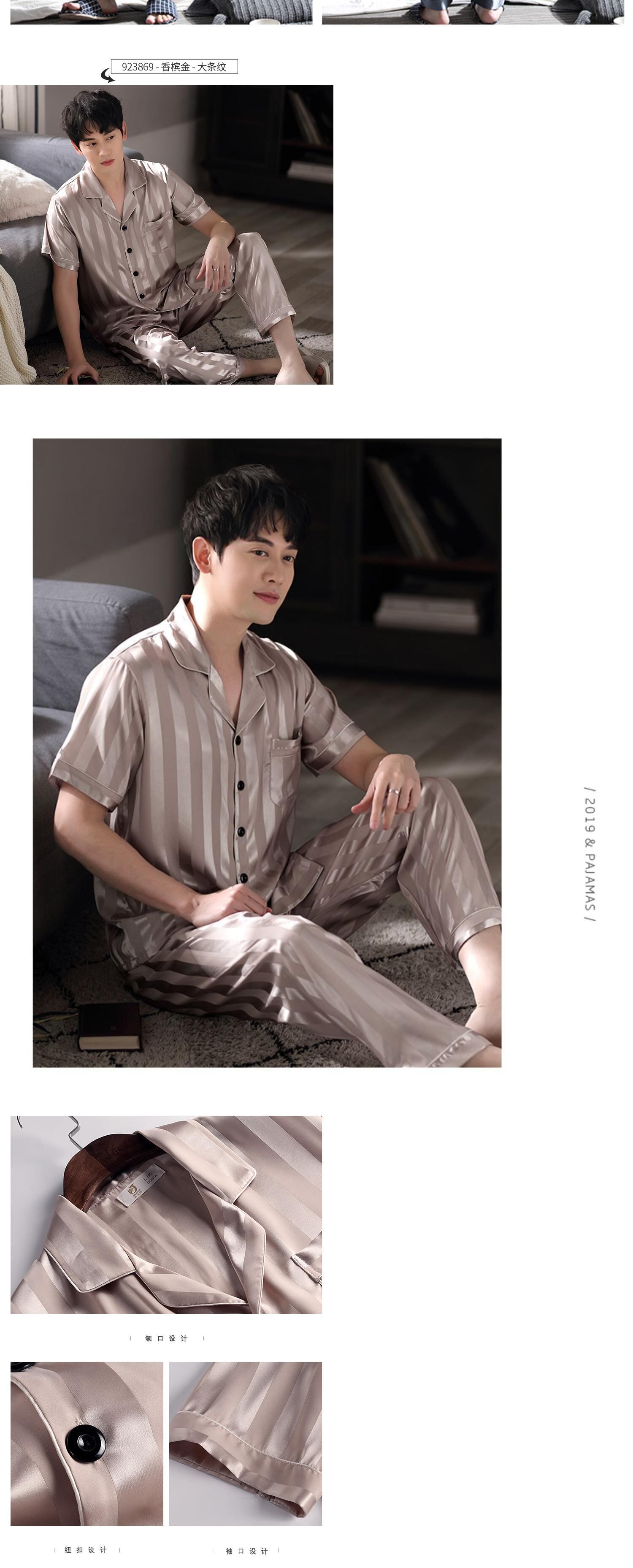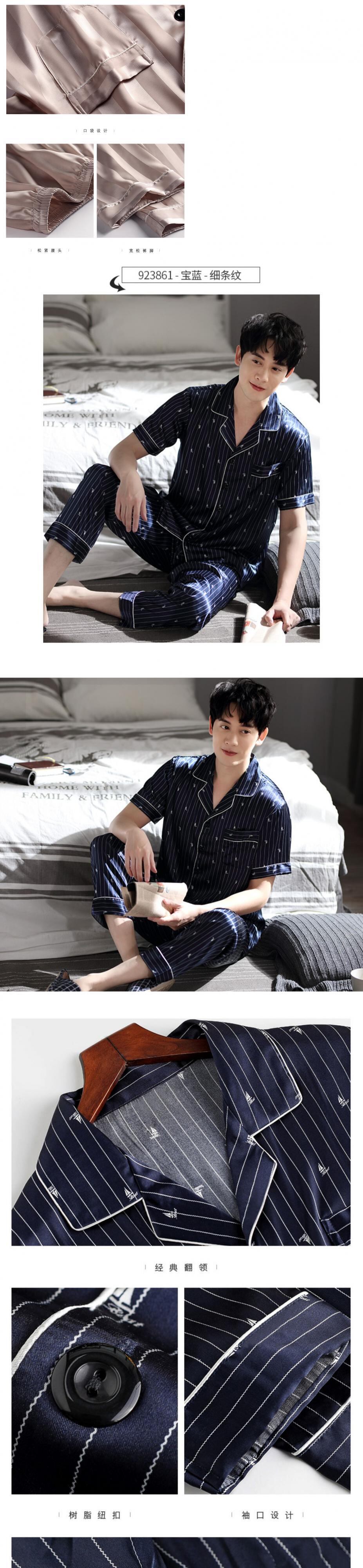 Jialefenメンズパジャマ夏薄アイスシルク半袖パンツホームサービスメンズシミュレーションシルクサマースーツ jial70145749003
