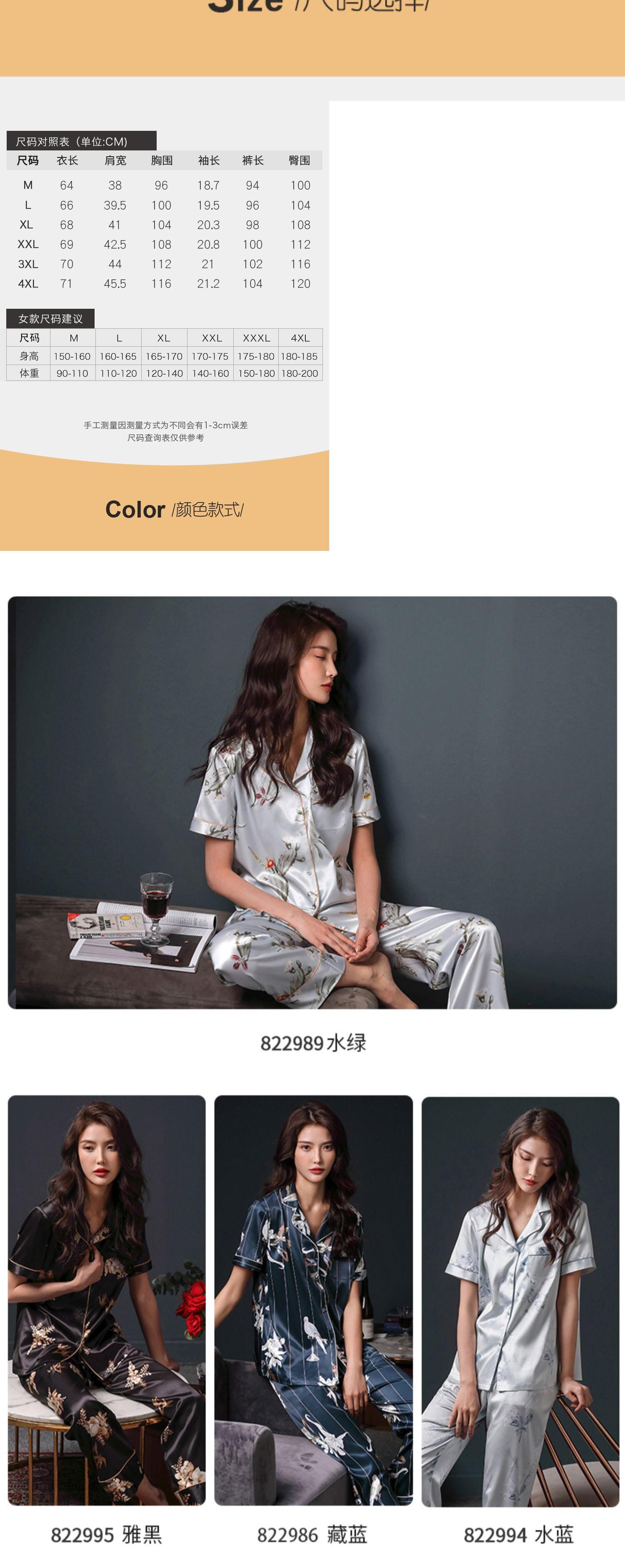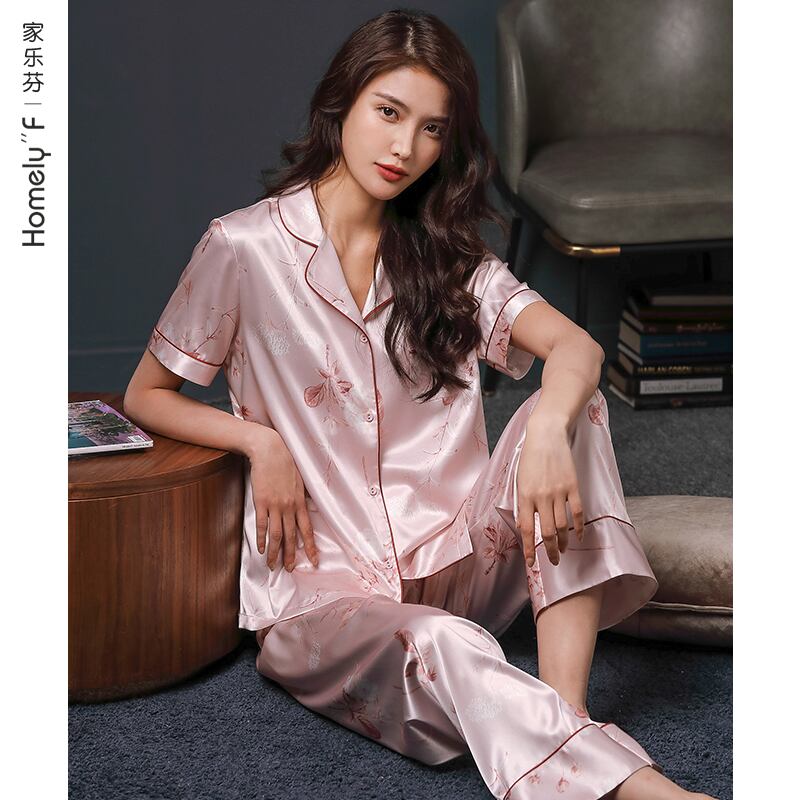 Jialefenパジャマレディース夏シルクアイスシルク半袖ズボンホームサービス夏薄片シミュレーションシルクスーツ jial31464735858