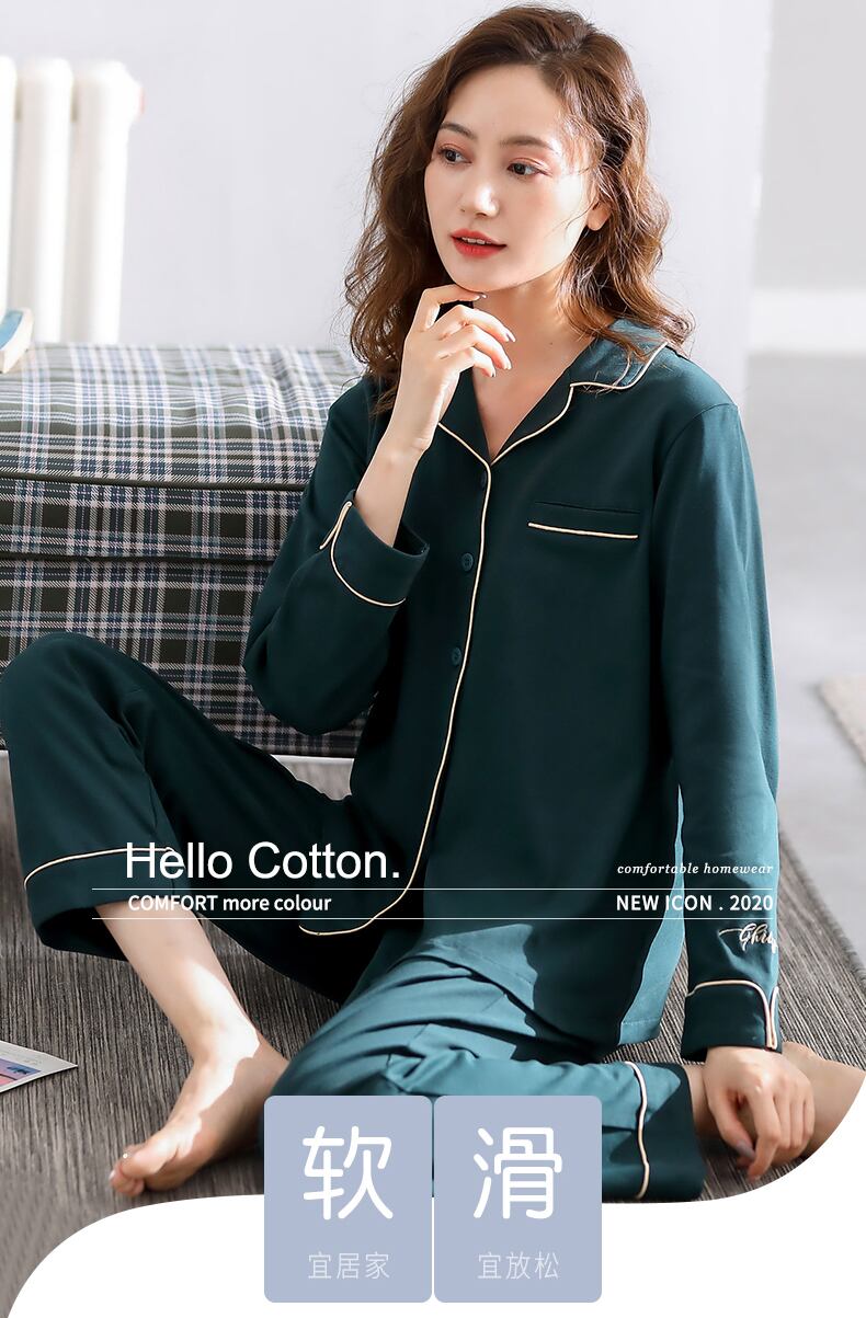 パジャマの女性の春と秋のスタイルと秋の綿の長袖のホームウェアの女性の綿の秋と冬の薄いカーディガンの女性のスーツ jial987192367