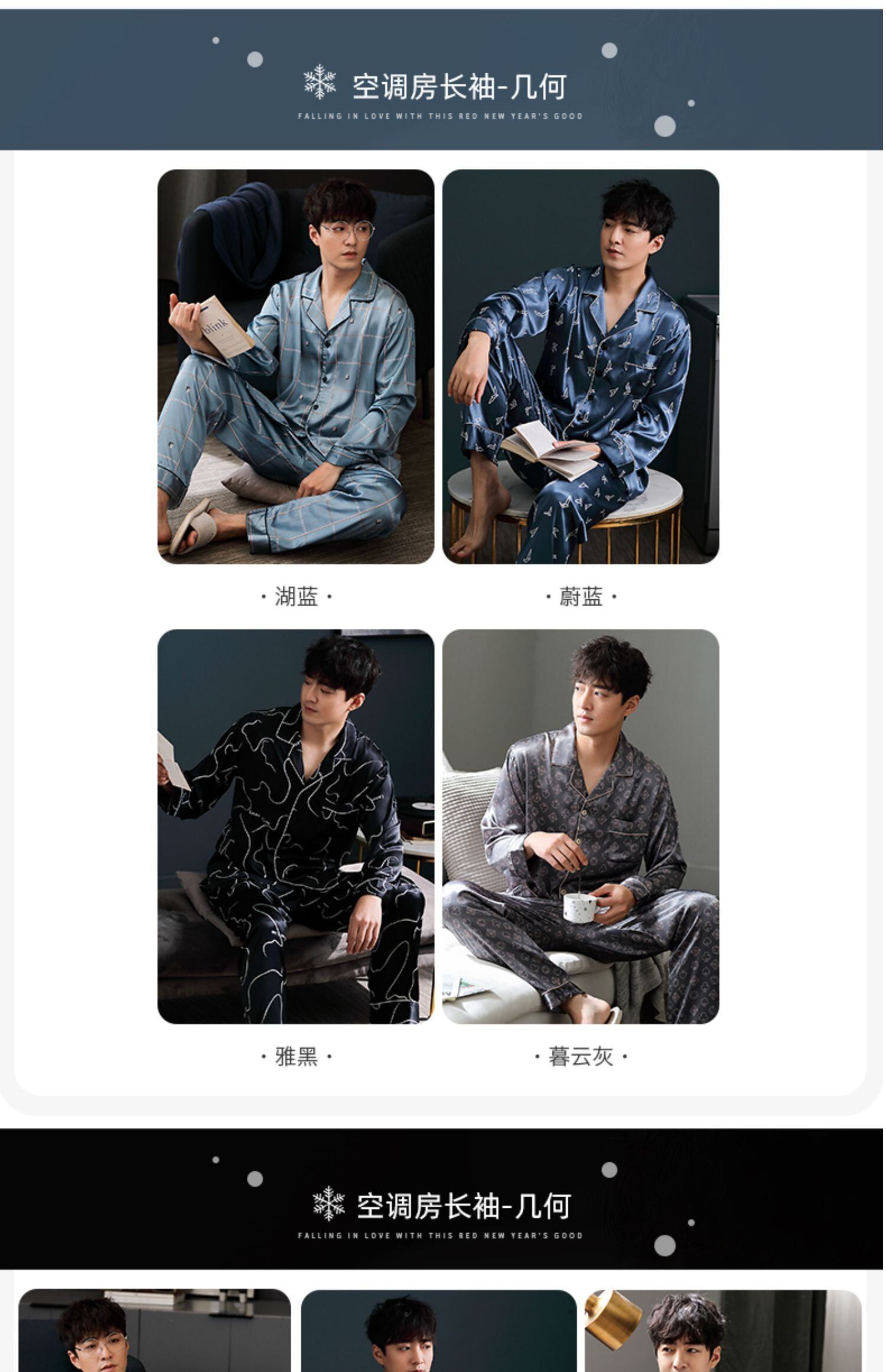 パジャマメンズ春夏夏シルクアイスシルク長袖ホームサービス春秋薄切片人工シルクメンズスーツ jial45758626516